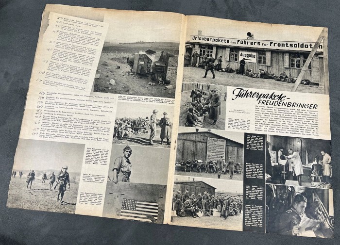 Here is your chance to own a nice period issue of the magazine Die Wehrmacht. Lots of interesting period photos and articles inside, mostly related to the Afrika Campaign. Dated December 1942 under the title on the front cover. Some age but overall will display great with other items!    The Wehrmacht was the unified armed forces of Nazi Germany from 1935 to 1945. It consisted of the Heer (army), the Kriegsmarine (navy) and the Luftwaffe (air force). The designation ” Wehrmacht ” replaced the previously used term Reichswehr , and was the manifestation of the Nazi regime’s efforts to rearm Germany to a greater extent than the Treaty of Versailles permitted. During the war about 18 million men served in the Wehrmacht . Free shipping ANYWHERE IN THE WORLD & I don’t charge PayPal fees like some of the other guys!