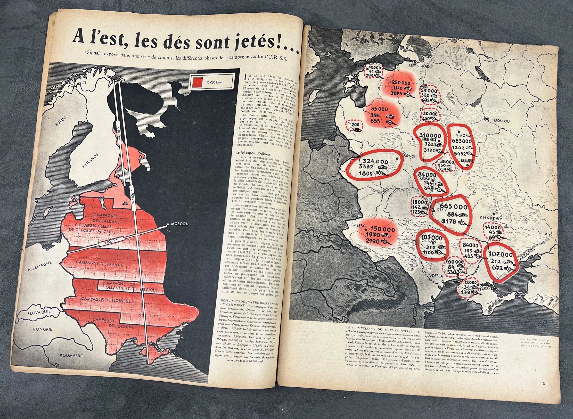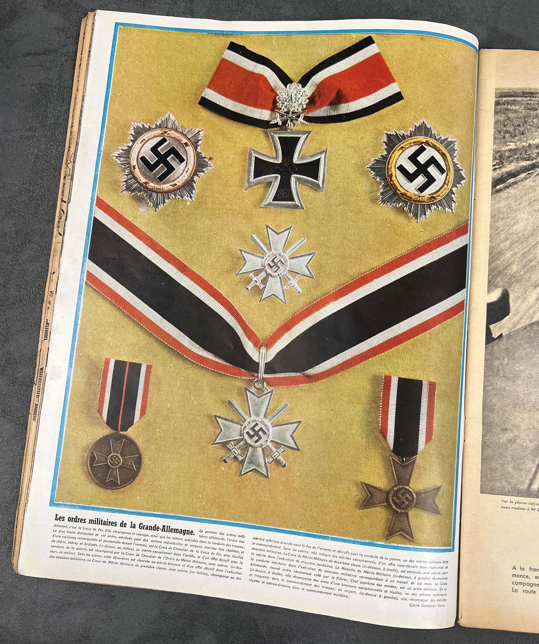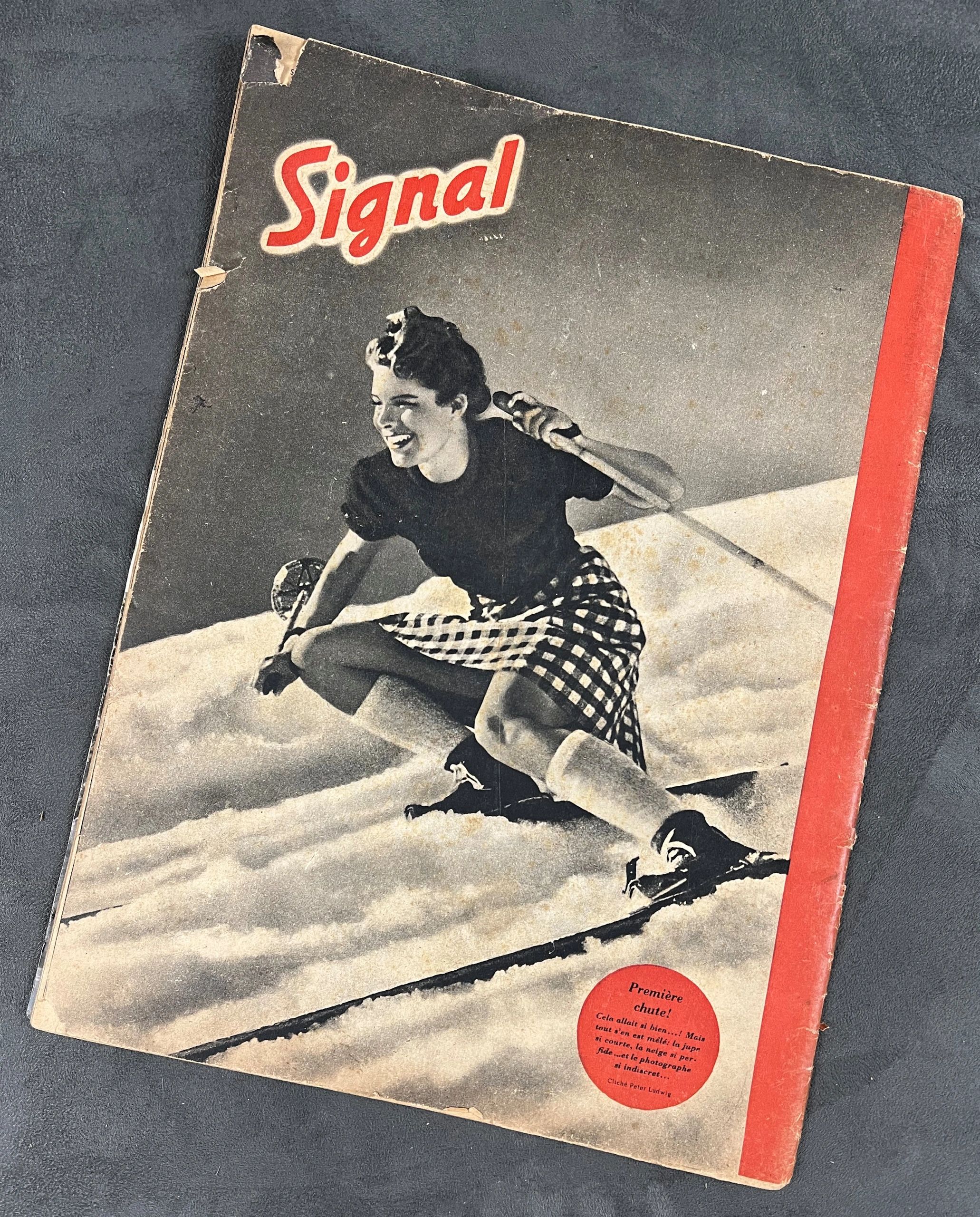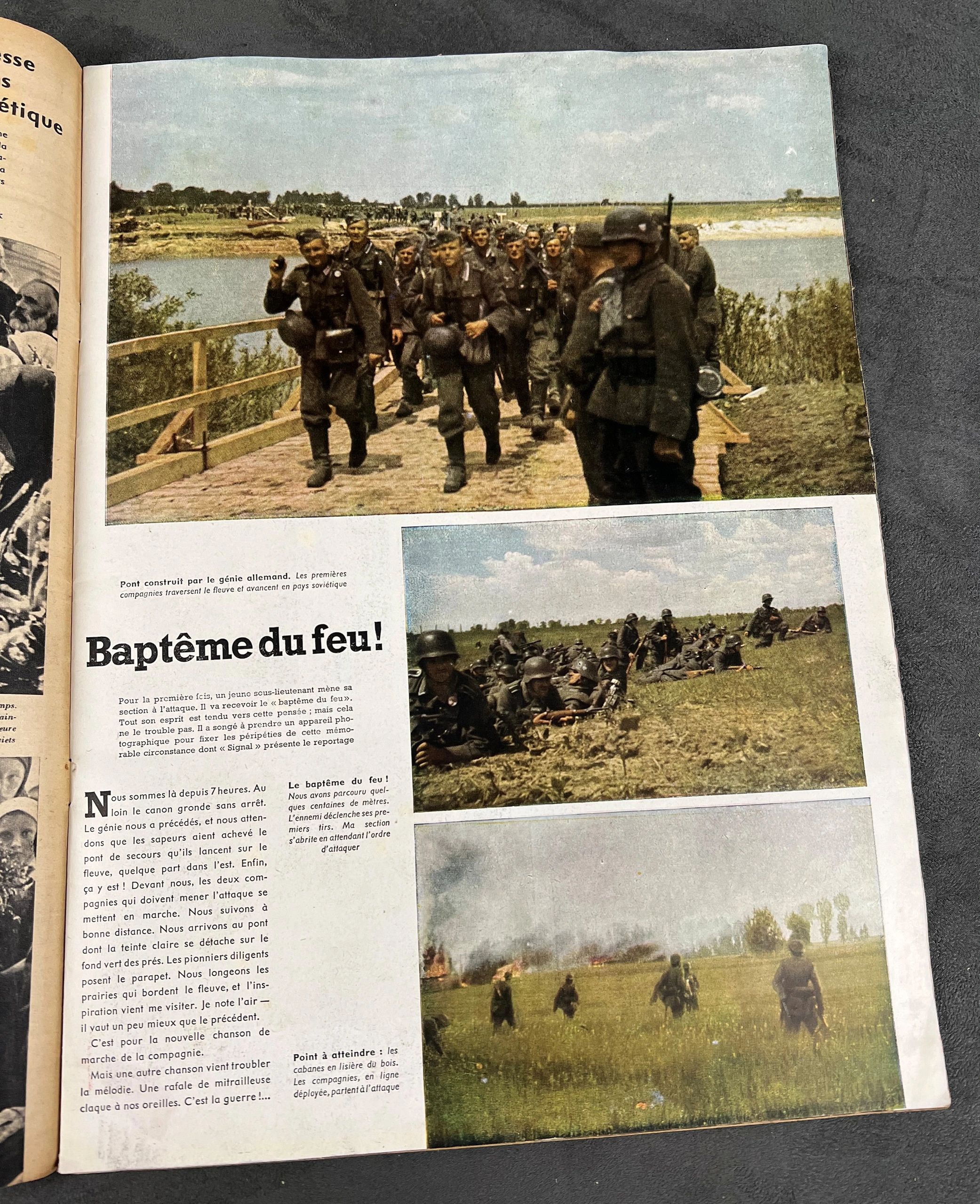 Here is your chance to own a nice period issue of the magazine Signal. Lots of interesting period photos and articles inside. Dated December 1941 on the front cover and is a French language issue. In good condition overall. Will display great with other items! Click HERE to view more images of this item! The Wehrmacht was the unified armed forces of Nazi Germany from 1935 to 1945. It consisted of the Heer (army), the Kriegsmarine (navy) and the Luftwaffe (air force). The designation ” Wehrmacht ” replaced the previously used term Reichswehr , and was the manifestation of the Nazi regime’s efforts to rearm Germany to a greater extent than the Treaty of Versailles permitted. During the war about 18 million men served in the Wehrmacht . Free shipping ANYWHERE IN THE WORLD & I don’t charge PayPal fees like some of the other guys!