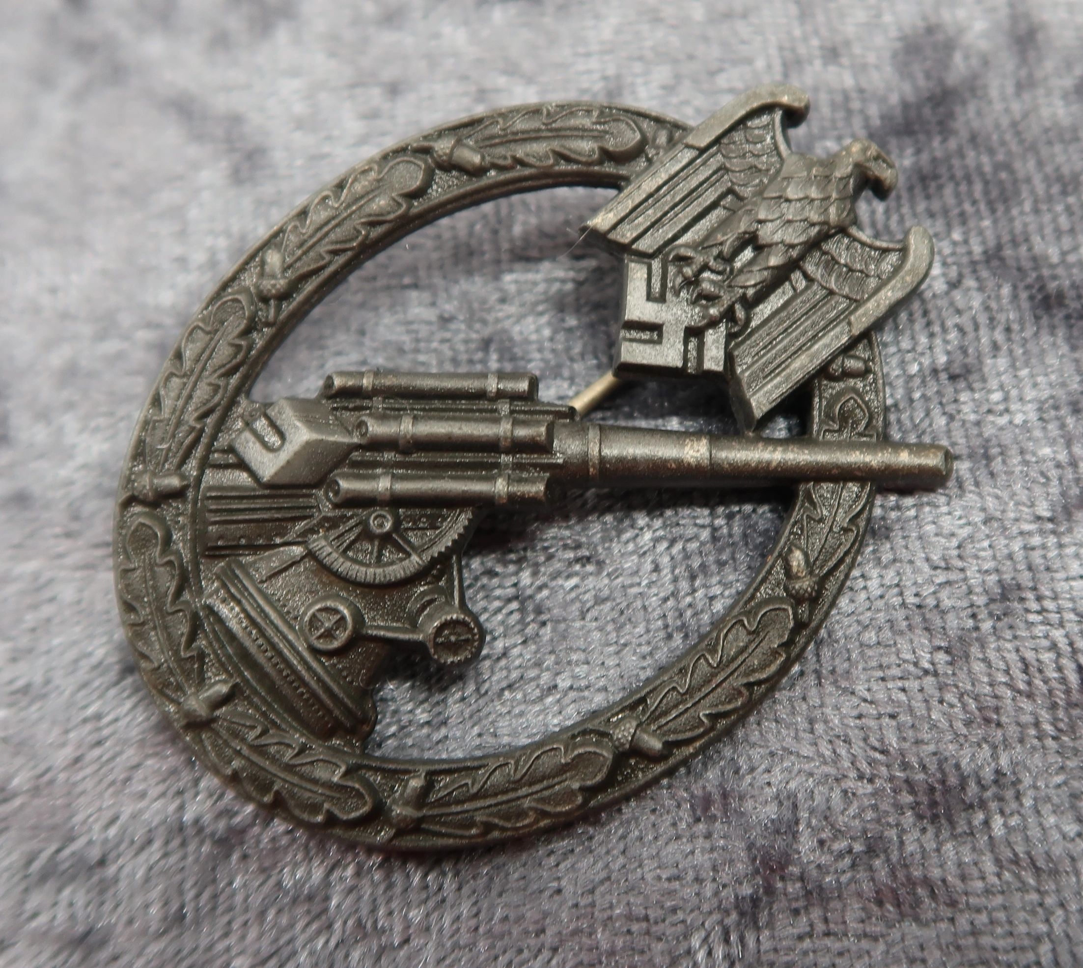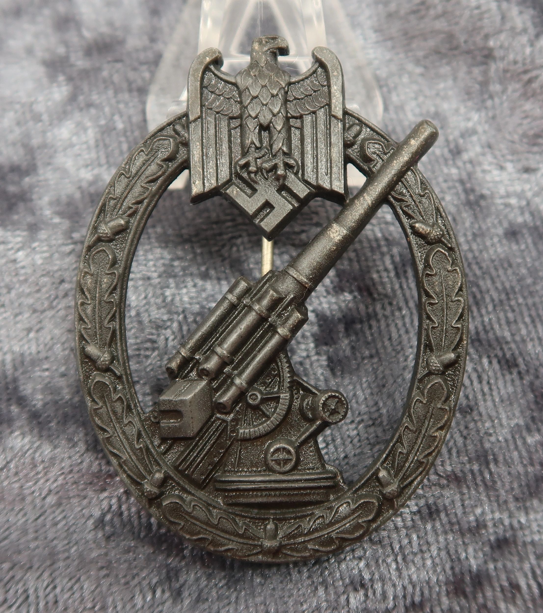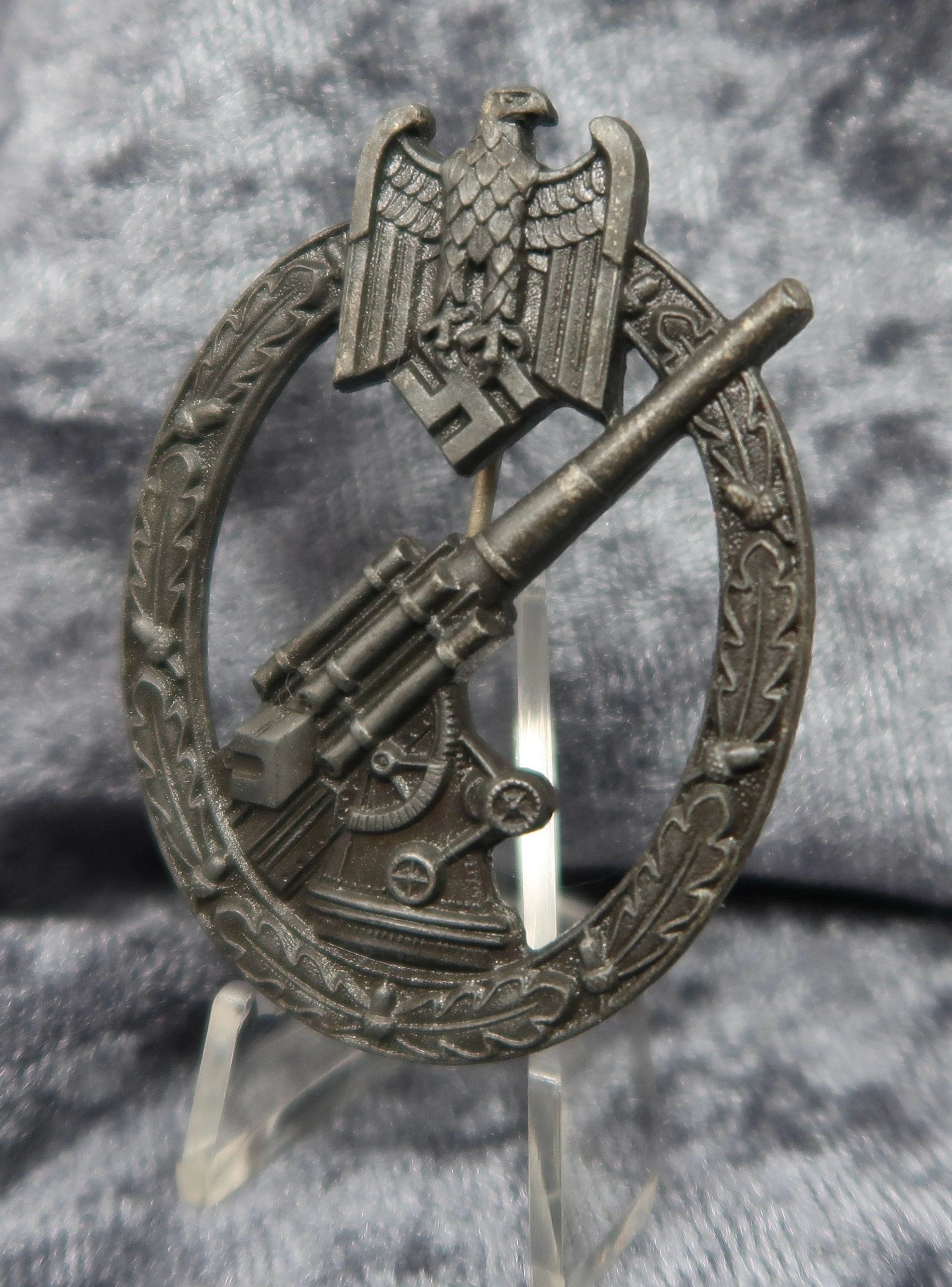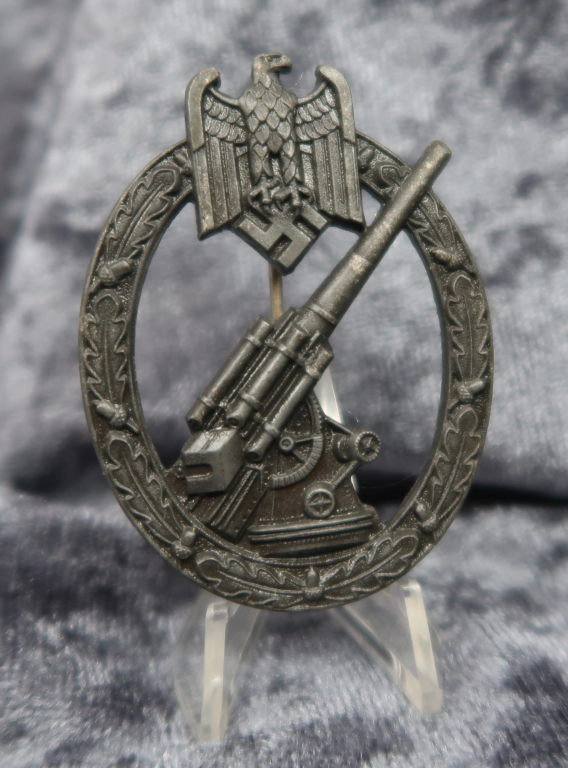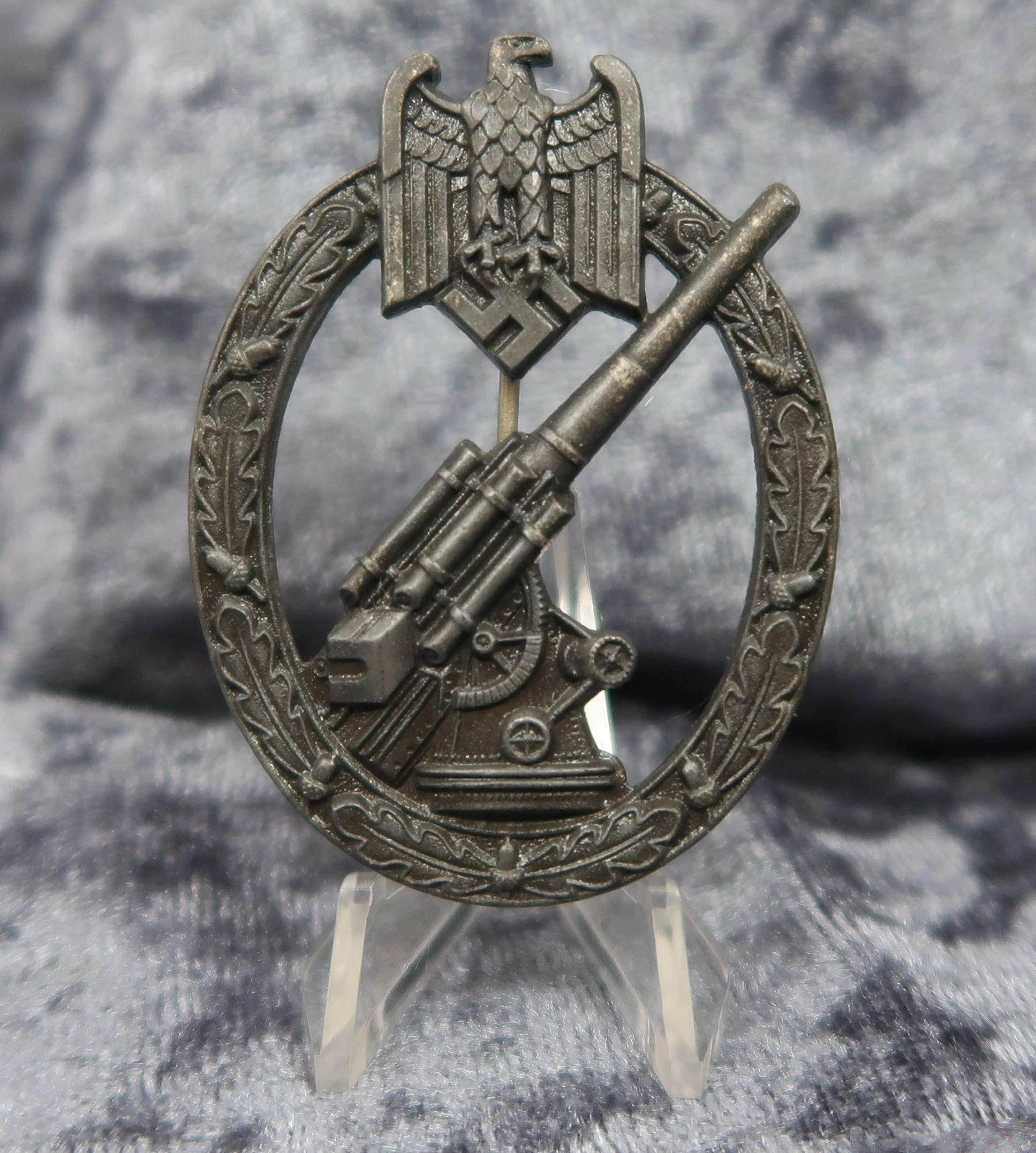 Here is your chance to own a gorgeous flak artillery badge produced by S&L. This example retains nearly all of it’s original dark factory finish and would rate at near mint. Nearly impossible to upgrade and textbook in every way. Free shipping ANYWHERE IN THE WORLD & I don’t charge PayPal fees like some of the other guys!