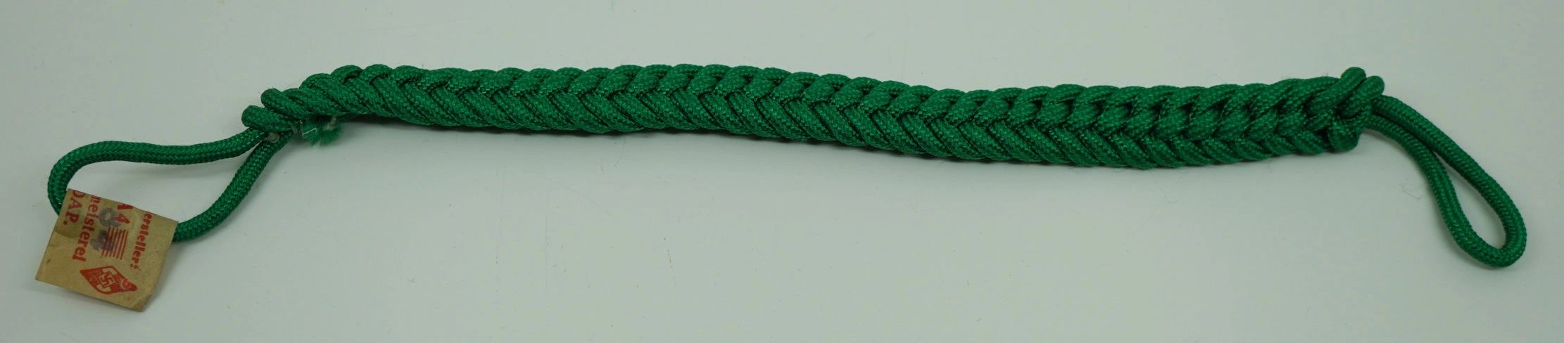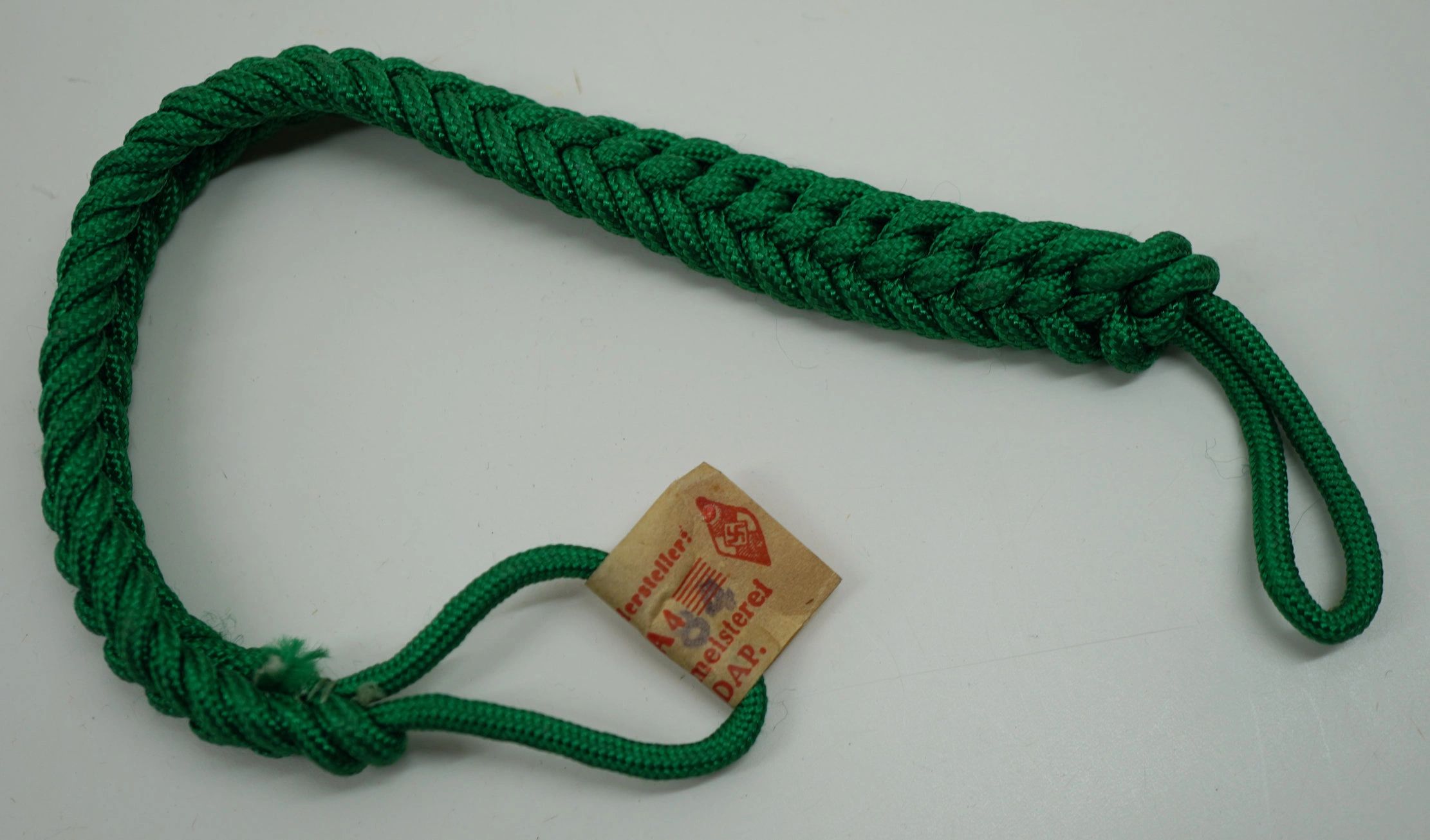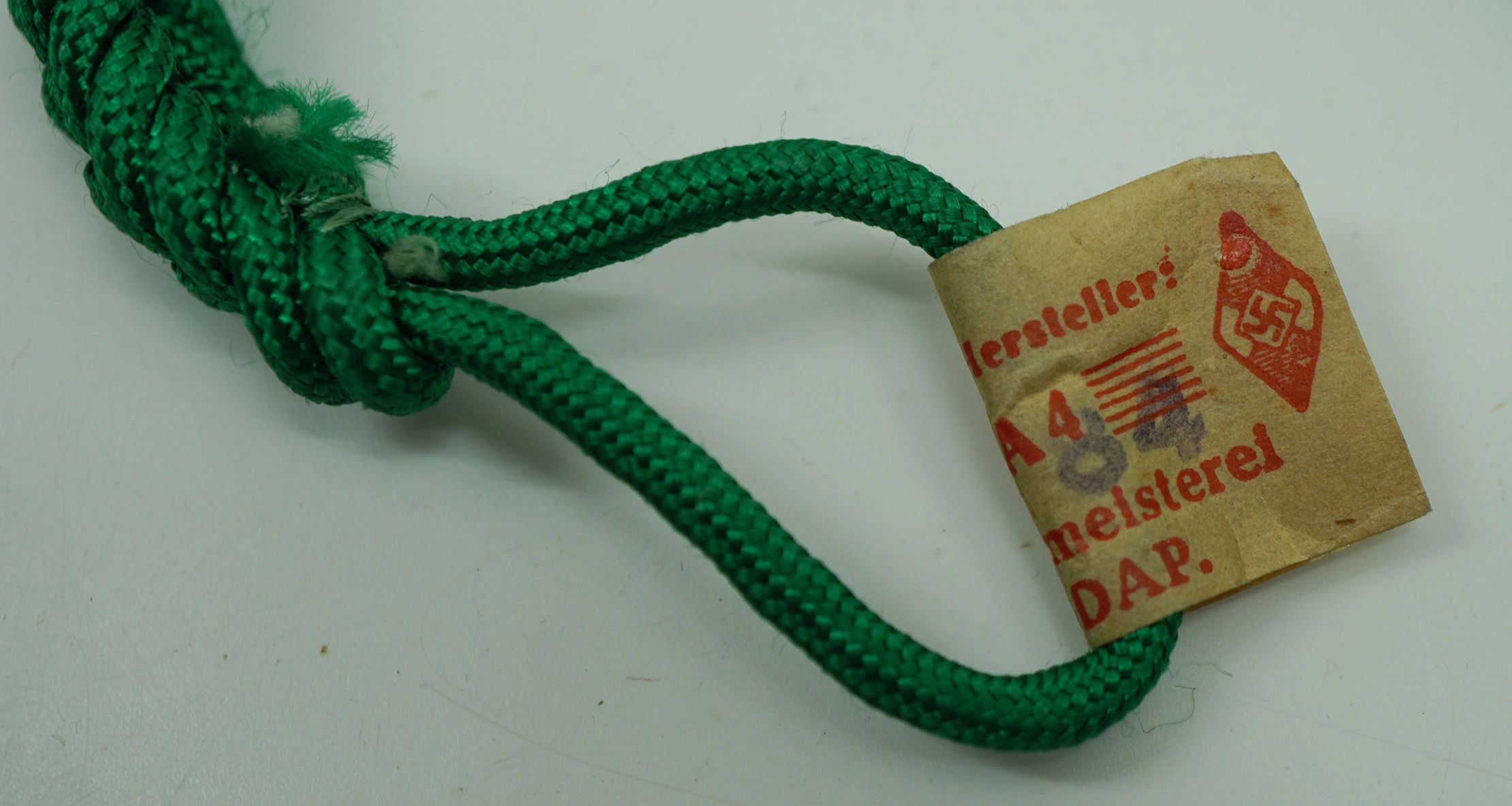 Here is your chance to own an original youth Scharführer lanyard. Would make for a perfect replacement if need be for the shirt. Complete still with the RZM tag. This would be a fantastic piece to display with other items of the period. Absolutely guaranteed authentic! The Hitler Youth was the youth organization of the Nazi Party in Germany. Its origins dated back to 1922 and it received the name Hitler-Jugend in July 1926. From 1933 until 1945, it was the sole official boy’s youth organisation in Germany and was partially a paramilitary organization; it was composed of the Hitler Youth proper for male youths aged 14 to 18, and the Deutsches Jungvolk, or DJ, for younger boys aged 10 to 14. The members of the Hitler Youth were viewed as ensuring the future of Nazi Germany and were indoctrinated in Nazi ideology, including racism. The Hitler Youth appropriated many of its activities of the Boy Scout movement (which was banned in 1935), including camping and hiking. However, over time it changed in content and intention. For example, many activities closely resembled military training, with weapons training, assault course circuits and basic tactics. The aim was to instill the motivation that would enable its members to fight faithfully for Nazi Germany as soldiers. There was greater emphasis on physical fitness, hardness and military training than on academic study. Free shipping ANYWHERE IN THE WORLD & I don’t charge PayPal fees like some of the other guys!