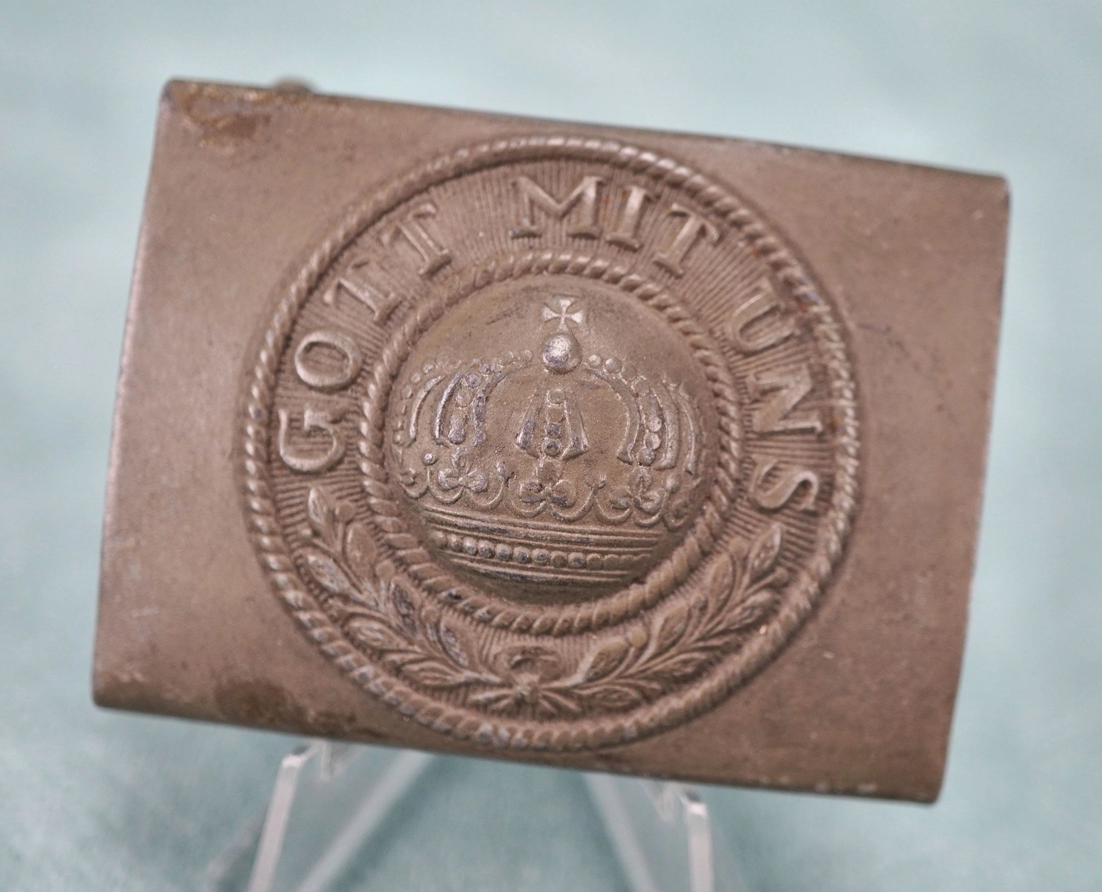 Here is your chance to pick up a Imperial belt buckle produced in steel. Void of any issues or repairs! This one has a really great patina to it and overall I would rate this as a nice example.      Imperial Germany was formally founded on 1 January 1871 when the south German states, except for Austria, joined the North German Confederation and the new constitution came into force changing the name of the federal state to the German Empire and introduced the title of German Emperor for Wilhelm I, King of Prussia from the House of Hohenzollern. Berlin remained its capital, and Otto, Prince of Bismarck, Minister-President of Prussia became Chancellor, the head of government. As these events occurred, the Prussian-led North German Confederation and its southern German allies were still engaged in the Franco-Prussian War. The German Empire consisted of 26 states, most of them ruled by royal families. They included four kingdoms, six grand duchies, five duchies (six before 1876), seven principalities, three free Hanseatic cities, and one imperial territory. Although Prussia was one of few kingdoms in the realm, it contained about two thirds of Germany’s population and territory. Prussian dominance had also been established constitutionally. During its 47 years of existence, the German Empire was an industrial, technological, and scientific giant, gaining more Nobel Prizes in science than any other country. By 1900, Germany was the largest economy in Europe, surpassing the United Kingdom, as well as the second-largest in the world, behind only the United States. Late in Bismarck’s chancellorship and in spite of his personal opposition, Germany became involved in colonialism. Claiming much of the leftover territory that was yet unclaimed in the scramble for Africa, it managed to build the third largest colonial empire at the time, after the British and the French empires. Germany became a great power, boasting a rapidly developing rail network, the world’s strongest army, and a fast-growing industrial base. In less than a decade, its navy became second only to Britain’s Royal Navy. In 1879, the German Empire consolidated the Dual Alliance with Austria-Hungary, followed by the Triple Alliance with Italy in 1882. It also retained strong diplomatic ties to the Ottoman Empire. When World War 1 arrived, Italy left the alliance and the Ottoman Empire formally allied with Germany. In the First World War, German plans to capture Paris quickly in the autumn of 1914 failed. The war on the Western Front became a stalemate. However, Imperial Germany had success on the Eastern Front. The German declaration of unrestricted submarine warfare in early 1917 contributed to bringing the United States into the war. The high command under Paul von Hindenburg and Erich Ludendorff increasingly controlled the country, but in October after the failed offensive in spring 1918, the German armies were in retreat, allies Austria-Hungary and the Ottoman Empire had collapsed, and Bulgaria had surrendered. The Empire collapsed in the November 1918 Revolution with the removal of its monarchs. This left Germany with the Weimar Republic, and a devastated and unsatisfied populace, faced with postwar reparation costs of nearly 270 billion dollars, all in all leading to the rise of Adolf Hitler and Nazism. Free shipping ANYWHERE IN THE WORLD & I don’t charge PayPal fees like some of the other guys!