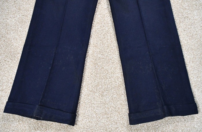 Here is your chance to own a wonderful pair of Kriegsmarine pants. These pants are in great condition with 1 small period repair. In excellent condition overall and what I would consider a smaller size.Worn, but not abused and guaranteed authentic. In violation of the Treaty of Versailles, the Kriegsmarine grew rapidly during German naval rearmament in the 1930s. The 1919 treaty had limited the size of the German navy previously, and prohibited the building of submarines.The Kriegsmarine ‘s most significant ships were the U-boats, most of which were constructed after Plan Z was abandoned at the beginning of World War II. Wolfpacks were rapidly assembled groups of submarines which attacked British convoys during the first half of the Battle of the Atlantic but this tactic was largely abandoned by May 1943 when U-boat losses mounted. Along with the U-boats, surface commerce raiders (including auxiliary cruisers) were used to disrupt Allied shipping in the early years of the war, the most famous of these being the heavy cruisers Admiral Graf Spee and Admiral Scheer and the battleship Bismarck . However, the adoption of convoy escorts, especially in the Atlantic, greatly reduced the effectiveness of surface commerce raiders against convoys. Free shipping ANYWHERE IN THE WORLD & I don’t charge PayPal fees like some of the other guys!
