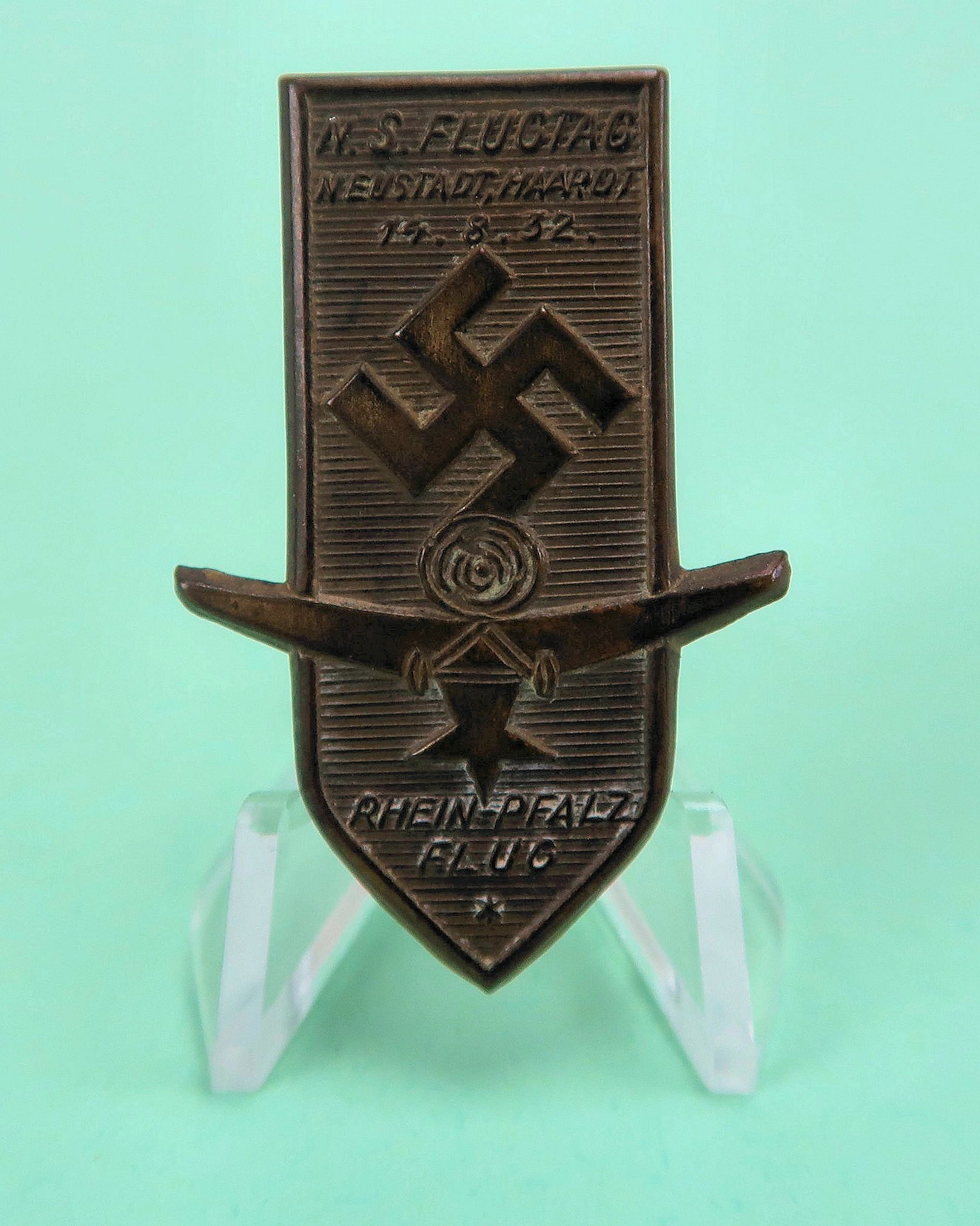 Here is your chance to pick up a wonderful tinnie for the Flugtag event held in Rheinpfalz in 1932. I like pieces like this because not only are they extremely affordable but each one is it’s own little work of art in a sense.  The National Socialist German Workers’ Party (Nationalsozialistische Deutsche Arbeiterpartei, abbreviated NSDAP), was a far-right political party in Germany that was active between 1920 and 1945, that created and supported the ideology of National Socialism. The Nazi Party emerged from the German nationalist, racist and populist Freikorps paramilitary culture, which fought against the communist uprisings in post-World War I Germany. Initially, Nazi political strategy focused on anti-big business, anti-bourgeois, and anti-capitalist rhetoric, although this was later downplayed to gain the support of business leaders, and in the 1930s the party’s main focus shifted to anti-Semitic and anti-Marxist themes. Adolf Hitler, the party’s leader since 1921, was appointed Chancellor of Germany by President Paul von Hindenburg on 30 January 1933. Hitler rapidly established a totalitarian regime known as the Third Reich. After the death of President Hindenburg on 2 August 1934, Hitler merged the offices of party leader, head of state and chief of government in one, taking the title of Führer und Reichskanzler. The NSDAP would control Germany until the end of the war. Free shipping ANYWHERE IN THE WORLD & I don’t charge PayPal fees like some of the other guys!