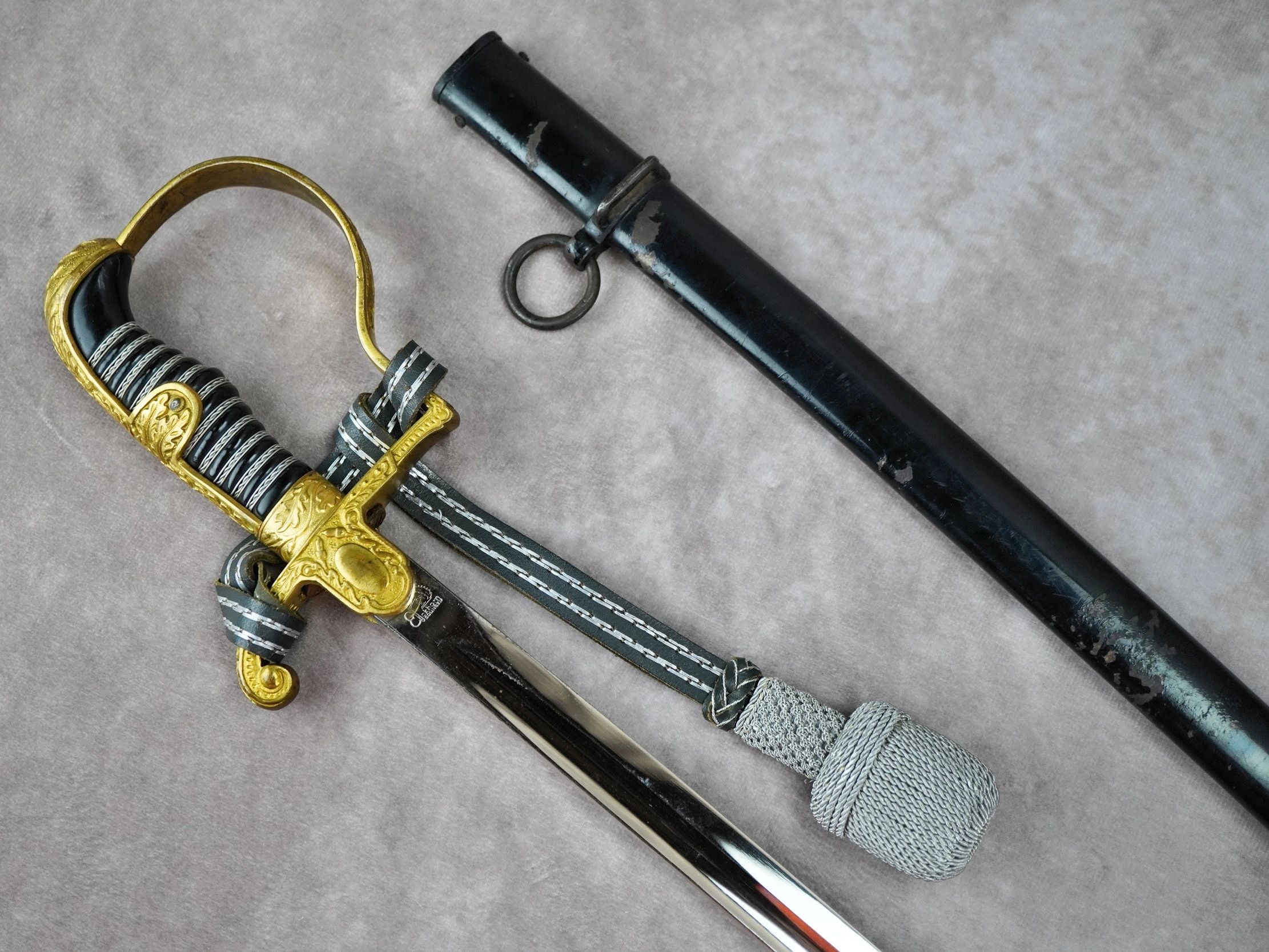 If you are looking for an attractive sword, look no further! This army sword is in good condition overall and with nice and tight grip wire. Maker marked on the reverse of the blade for Carl Eickhorn from Solingen and complete with their squirrel logo. Front side of the blade is distributor marked for Eckhard from Hanau. Great blade so don’t miss out on this beautiful piece! Click HERE to view more images of this item! The Heer was the land forces component of the Wehrmacht, the regular German Armed Forces, from 1935 until it ceased to exist in 1945 and then formally dissolved in August 1946. During World War II, a total of about 13.6 million soldiers served in the German Army. Germany’s army personnel were made up of volunteers and conscripts. Only 17 months after Adolf Hitler announced publicly the German rearmament program, the Army reached its projected goal of 36 divisions. During the autumn of 1937, two more corps were formed. In 1938 four additional corps were formed with the inclusion of the five divisions of the Austrian Army after the Anschluss in March. During the period of its expansion under Hitler, the German Army continued to develop concepts pioneered during World War I, combining ground (Army) and air (Luftwaffe) assets into combined arms forces. The German military managed quick victories in the two initial years of World War II, a new style of warfare described as Blitzkrieg for its speed and destructive power. Free shipping ANYWHERE IN THE WORLD & I don’t charge PayPal fees like some of the other guys!