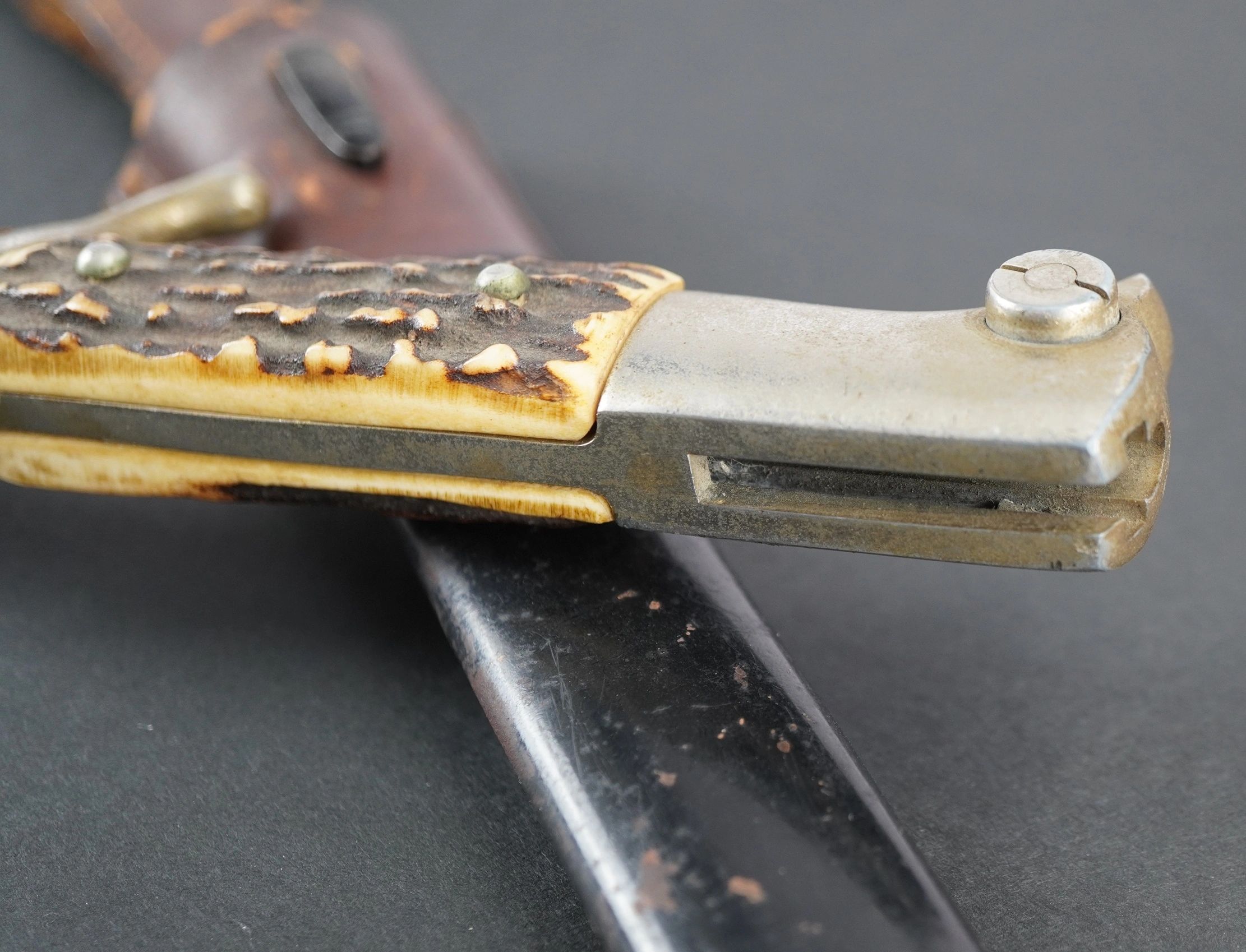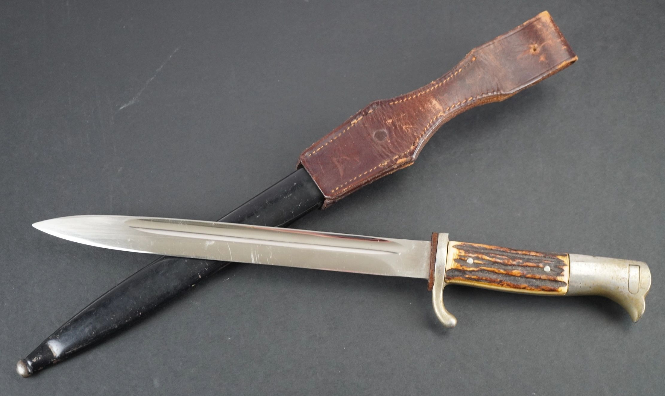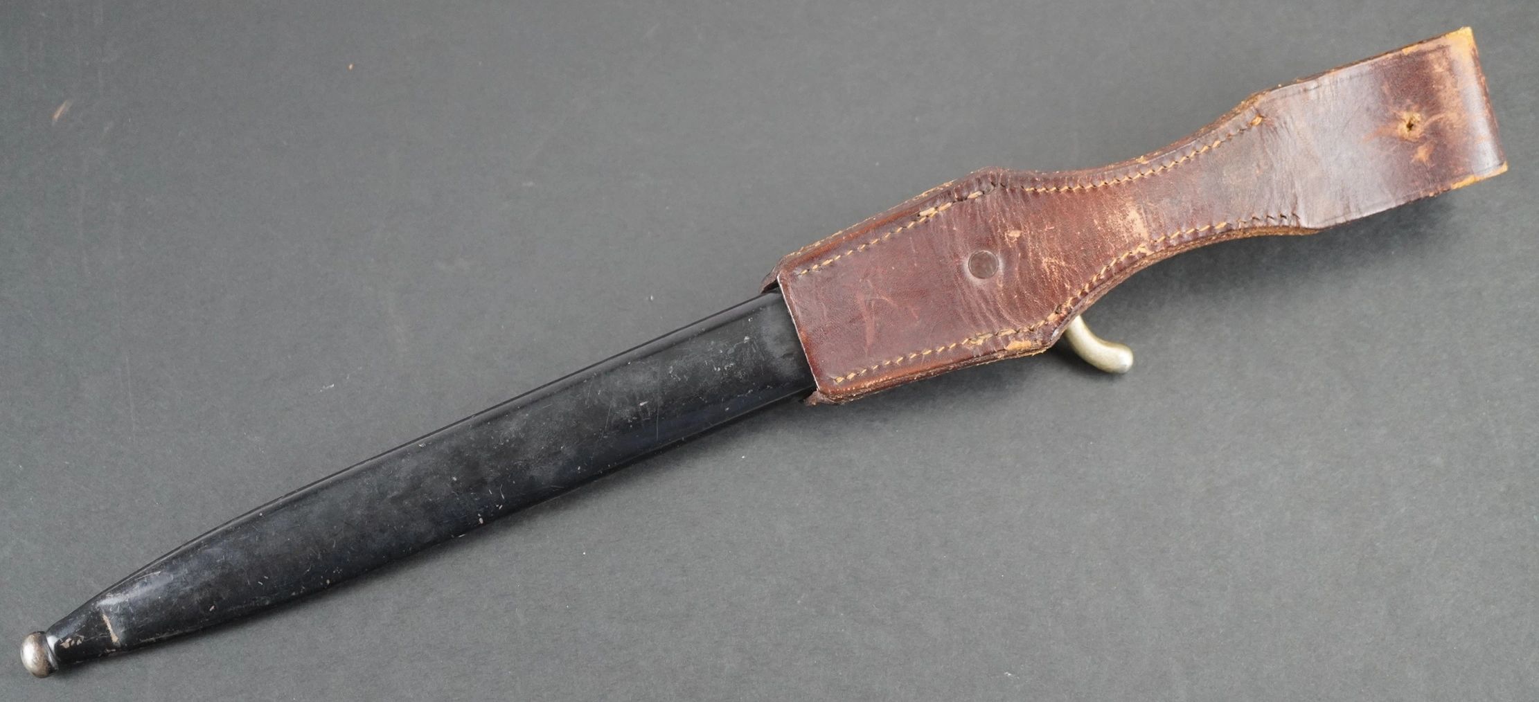 Here is your chance to pick up an etched Heer bayonet. Complete with the parade frog. A mirror like blade that has NOT been sharpened and retains the original tip. Great personalized etch to an Unteroffizier from a Flak Artillerie Schule on the reverse of the blade, which was likely done by the original owner or family as it is not a factory produced etch. Maker marked on the reverse of the blade for WKC. Small dent above the scabbard tip on the reverse. Would look great on display with other items. Absolutely guaranteed authentic! Click HERE to view more images of this item! The Heer was the land forces component of the Wehrmacht, the regular German Armed Forces, from 1935 until it ceased to exist in 1945 and then formally dissolved in August 1946. During World War II, a total of about 13.6 million soldiers served in the German Army. Germany’s army personnel were made up of volunteers and conscripts. Only 17 months after Adolf Hitler announced publicly the German rearmament program, the Army reached its projected goal of 36 divisions. During the autumn of 1937, two more corps were formed. In 1938 four additional corps were formed with the inclusion of the five divisions of the Austrian Army after the Anschluss in March. During the period of its expansion under Hitler, the German Army continued to develop concepts pioneered during World War I, combining ground (Army) and air (Luftwaffe) assets into combined arms forces. The German military managed quick victories in the two initial years of World War II, a new style of warfare described as Blitzkrieg for its speed and destructive power. Free shipping ANYWHERE IN THE WORLD & I don’t charge PayPal fees like some of the other guys!