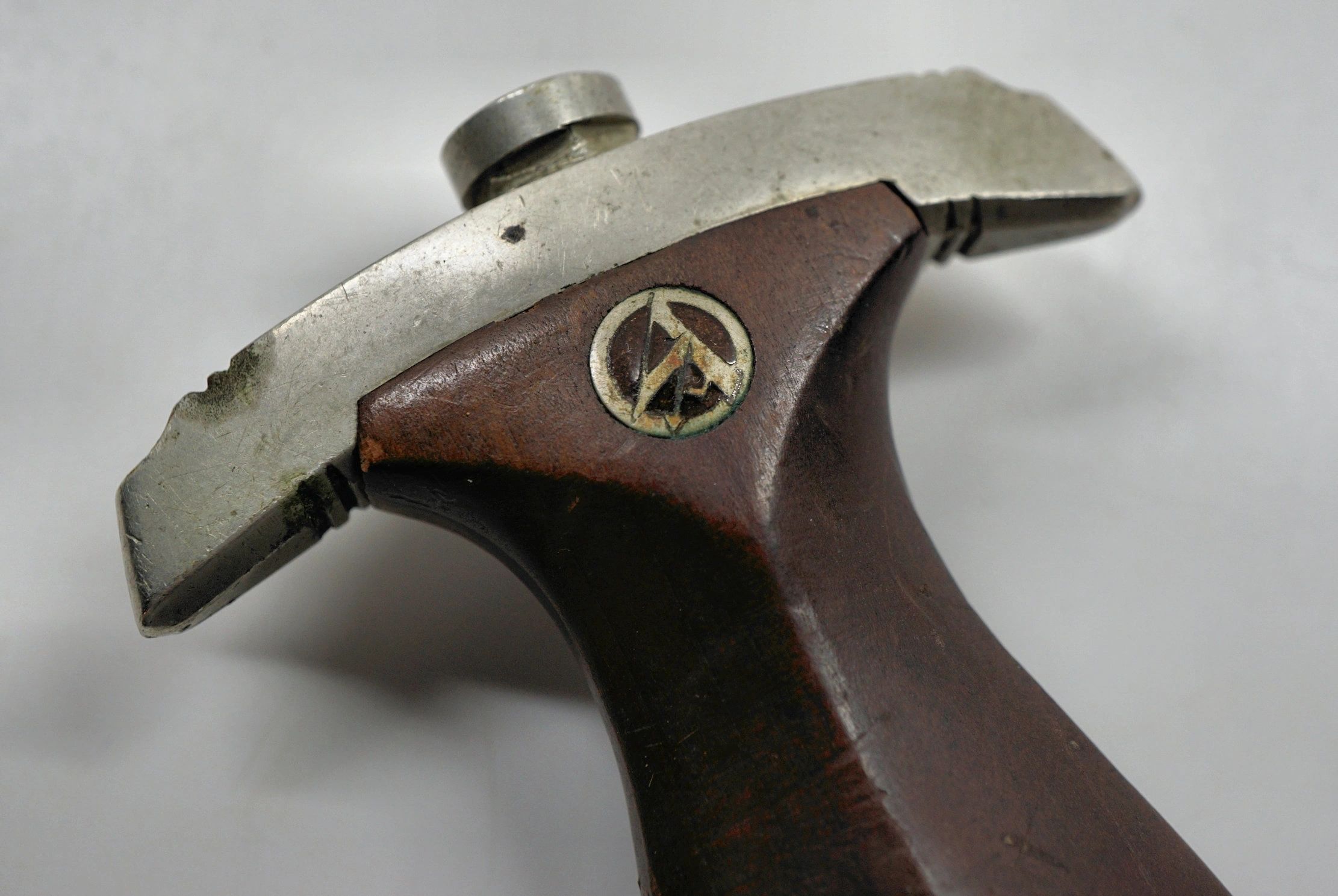 Here is your chance to pick up a really nice full factory ground Röhm SA dagger. What is commonly referred to as a lazy man’s grind as the original name of Ernst Röhm has barely been removed. Even the maker logo was ground away when the original Röhm inscription was removed due to regulation. The blade retains much of it’s original cross grain and the lower cross guard is “Om” marked for the Gau Wartheland region. A beautiful piece for sure and reasonably priced.CLICK HERE to view more images of this item!The Sturmabteilung was the Nazi Party’s original paramilitary wing. It played a significant role in Adolf Hitler’s rise to power in the 1920s and 1930s. Its primary purposes were providing protection for Nazi rallies and assemblies, disrupting the meetings of opposing parties, fighting against the paramilitary units of the opposing parties, especially the Rotfrontkämpferbund of the Communist Party of Germany, and intimidating Romani, trade unionists, and, especially, Jews. The SA were also called the Brownshirts, from the color of their uniform shirts. Brown-colored shirts were chosen as the SA uniform because a large number of them were cheaply available after World War I, having originally been ordered during the war for colonial troops posted to Germany’s former African colonies. After The Night of the Long Knives in 1934, Hitler withdrew support from the SA. The SA continued to exist, but was effectively superseded by the SS, although the paramilitary forces were not formally dissolved until after Nazi Germany’s final capitulation to the Allies in 1945. Free shipping ANYWHERE IN THE WORLD & I don’t charge PayPal fees like some of the other guys!