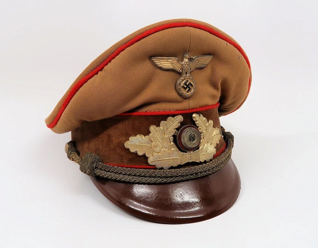 Here is your chance to pick up a very special visor cap. This Gau level displays extremely well and has a nice saddle shape. A spectacular example of a Form III visor that was period upgraded to meet form IV regulations. With the paper RZM label sewn on the underside of the sweatband. Shows period use. Free shipping ANYWHERE IN THE WORLD & I don’t charge PayPal fees like some of the other guys!