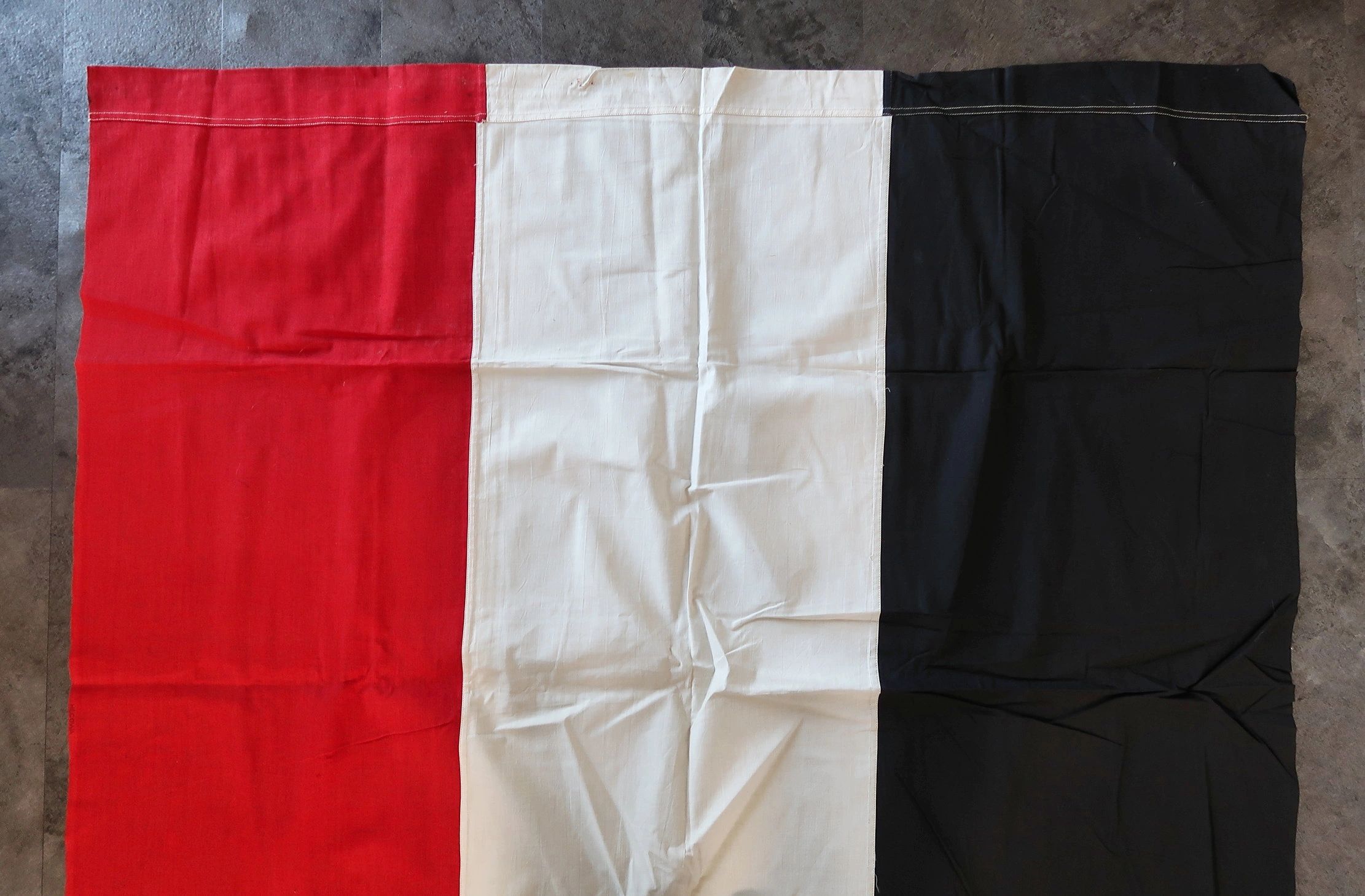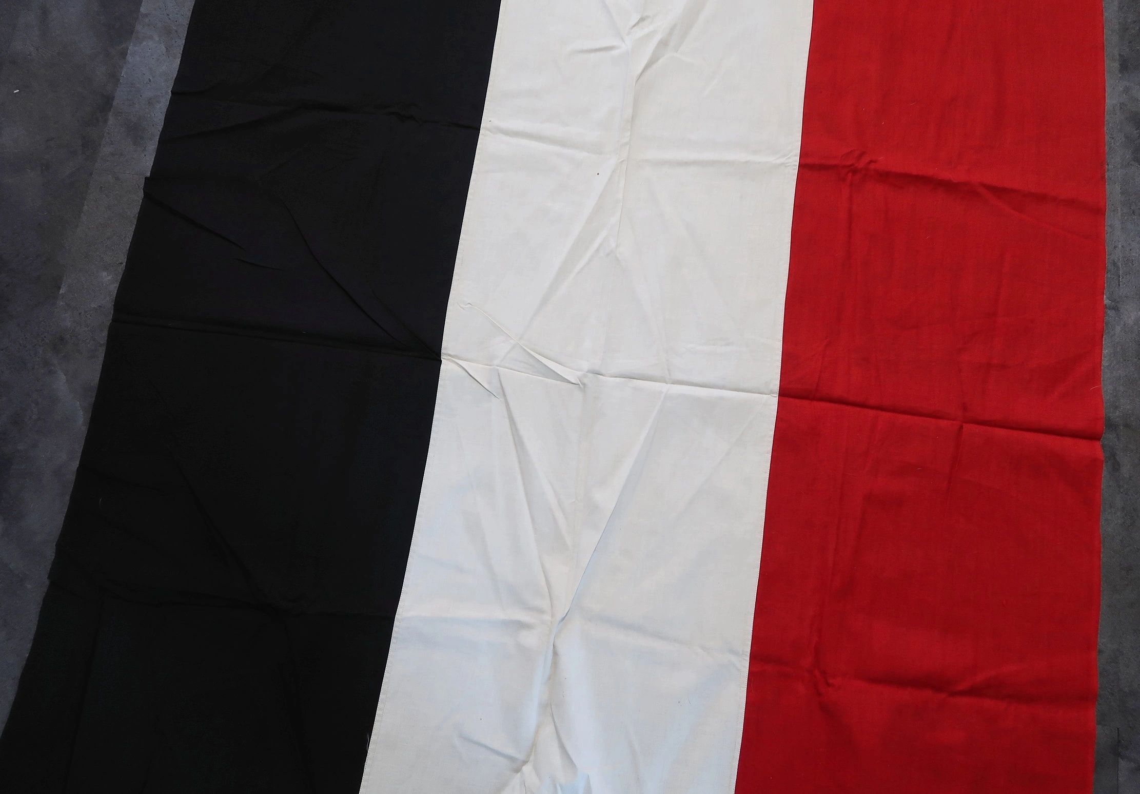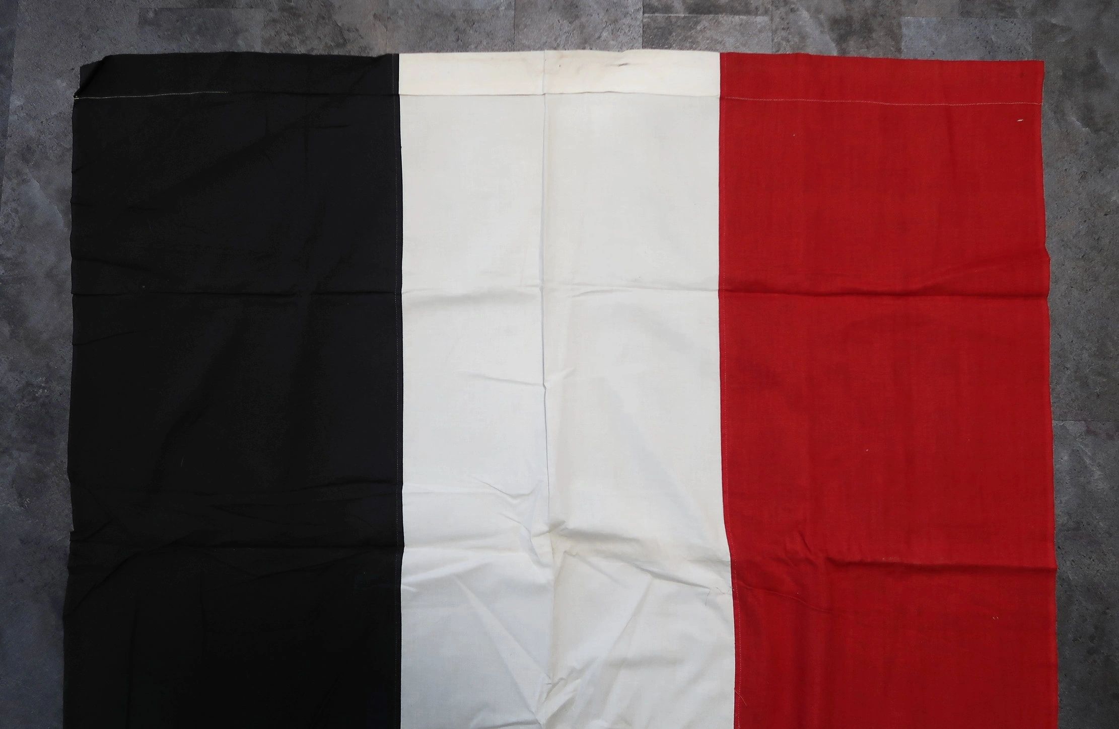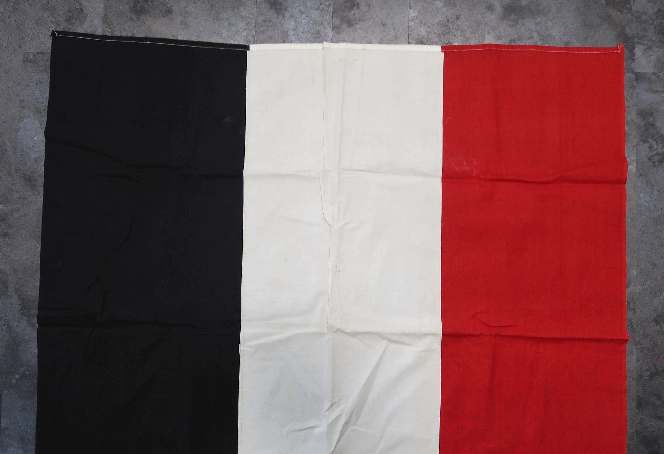 Here is your chance to own a very nice tricolor flag. In excellent condition overall with very minor soiling. Produced in cotton. This would be a fantastic example to put on display with other items of the period. Measures just under 90-1/2″ long and 40″ wide. Likely stored in a cedar chest or something similar as this is a fantastic example. Guaranteed authentic. Imperial Germany was formally founded on 1 January 1871 when the south German states, except for Austria, joined the North German Confederation and the new constitution came into force changing the name of the federal state to the German Empire and introduced the title of German Emperor for Wilhelm I, King of Prussia from the House of Hohenzollern. Berlin remained its capital, and Otto, Prince of Bismarck, Minister-President of Prussia became Chancellor, the head of government. As these events occurred, the Prussian-led North German Confederation and its southern German allies were still engaged in the Franco-Prussian War. The German Empire consisted of 26 states, most of them ruled by royal families. They included four kingdoms, six grand duchies, five duchies (six before 1876), seven principalities, three free Hanseatic cities, and one imperial territory. Although Prussia was one of few kingdoms in the realm, it contained about two thirds of Germany’s population and territory. Prussian dominance had also been established constitutionally. During its 47 years of existence, the German Empire was an industrial, technological, and scientific giant, gaining more Nobel Prizes in science than any other country. By 1900, Germany was the largest economy in Europe, surpassing the United Kingdom, as well as the second-largest in the world, behind only the United States. Late in Bismarck’s chancellorship and in spite of his personal opposition, Germany became involved in colonialism. Claiming much of the leftover territory that was yet unclaimed in the scramble for Africa, it managed to build the third largest colonial empire at the time, after the British and the French empires. Germany became a great power, boasting a rapidly developing rail network, the world’s strongest army, and a fast-growing industrial base. In less than a decade, its navy became second only to Britain’s Royal Navy. In 1879, the German Empire consolidated the Dual Alliance with Austria-Hungary, followed by the Triple Alliance with Italy in 1882. It also retained strong diplomatic ties to the Ottoman Empire. When World War 1 arrived, Italy left the alliance and the Ottoman Empire formally allied with Germany. In the First World War, German plans to capture Paris quickly in the autumn of 1914 failed. The war on the Western Front became a stalemate. However, Imperial Germany had success on the Eastern Front. The German declaration of unrestricted submarine warfare in early 1917 contributed to bringing the United States into the war. The high command under Paul von Hindenburg and Erich Ludendorff increasingly controlled the country, but in October after the failed offensive in spring 1918, the German armies were in retreat, allies Austria-Hungary and the Ottoman Empire had collapsed, and Bulgaria had surrendered. The Empire collapsed in the November 1918 Revolution with the removal of its monarchs. This left Germany with the Weimar Republic, and a devastated and unsatisfied populace, faced with postwar reparation costs of nearly 270 billion dollars, all in all leading to the rise of Adolf Hitler and Nazism. Free shipping ANYWHERE IN THE WORLD & I don’t charge PayPal fees like some of the other guys!