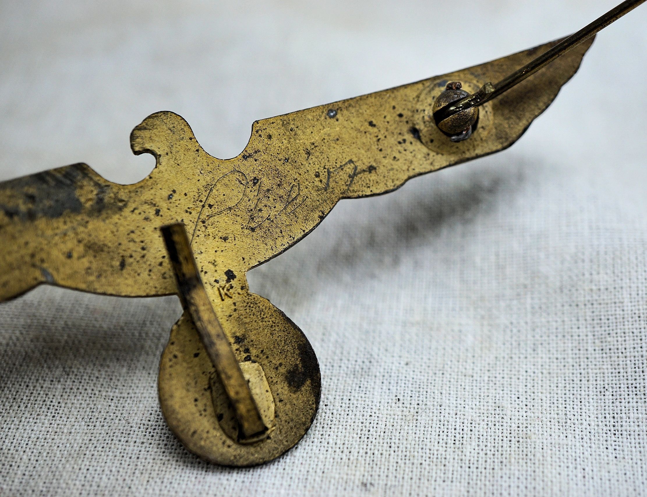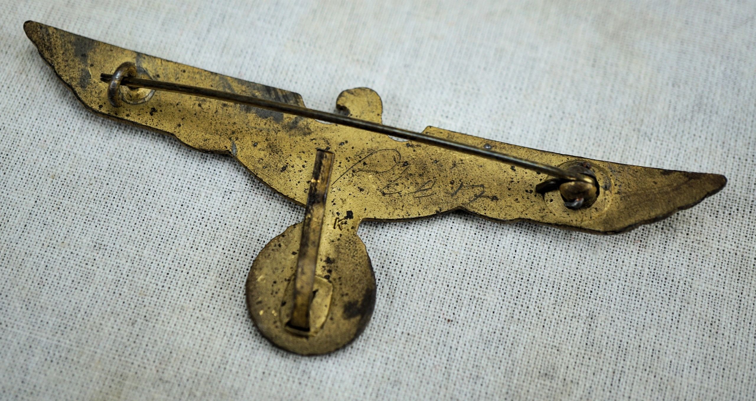 Here is your chance to pick up a very desirable Navy KM eagle produced in gold washed zinc. This one is actually somewhat of a scarce pattern being Rudolf Karneth (RK) maker marked on the reverse and a ball hinge type. What’s also nice is the original wearer marked the reverse with his last name. Highly detailed and for wear on the Navy officer’s summer uniform. Regardless of what specifically you collect, few things look as impressive in a riker mount than these bright eagles! In violation of the Treaty of Versailles, the Kriegsmarine grew rapidly during German naval rearmament in the 1930s. The 1919 treaty had limited the size of the German navy previously, and prohibited the building of submarines.The Kriegsmarine’s most significant ships were the U-boats, most of which were constructed after Plan Z was abandoned at the beginning of World War II. Wolfpacks were rapidly assembled groups of submarines which attacked British convoys during the first half of the Battle of the Atlantic but this tactic was largely abandoned by May 1943 when U-boat losses mounted. Along with the U-boats, surface commerce raiders (including auxiliary cruisers) were used to disrupt Allied shipping in the early years of the war, the most famous of these being the heavy cruisers Admiral Graf Spee and Admiral Scheer and the battleship Bismarck. However, the adoption of convoy escorts, especially in the Atlantic, greatly reduced the effectiveness of surface commerce raiders against convoys.Free shipping ANYWHERE IN THE WORLD & I don’t charge PayPal fees like some of the other guys!
