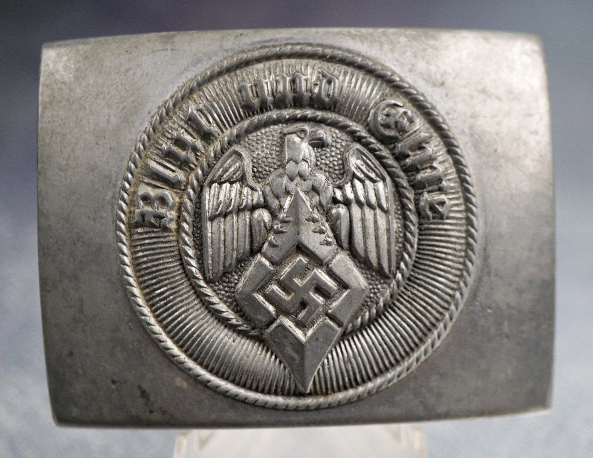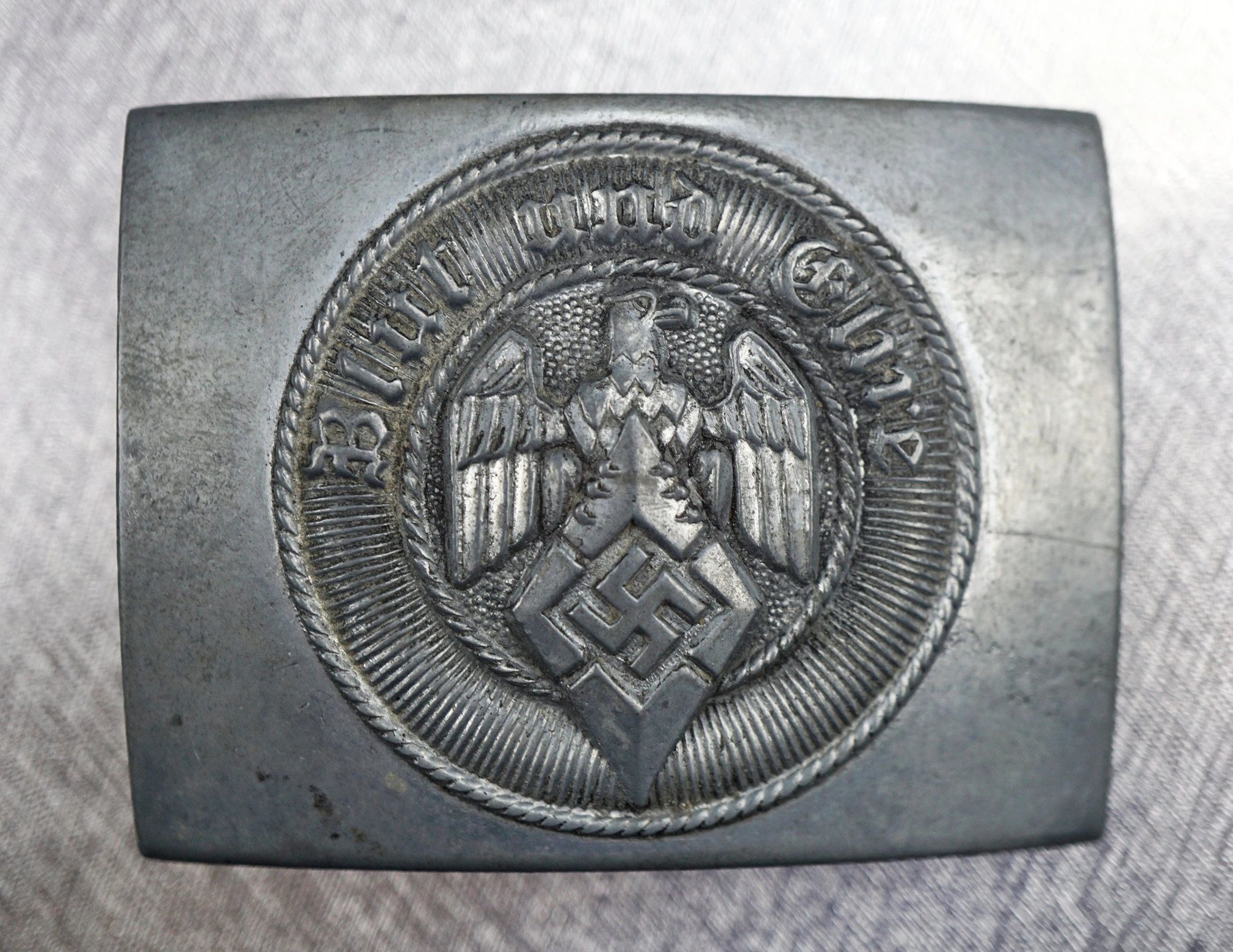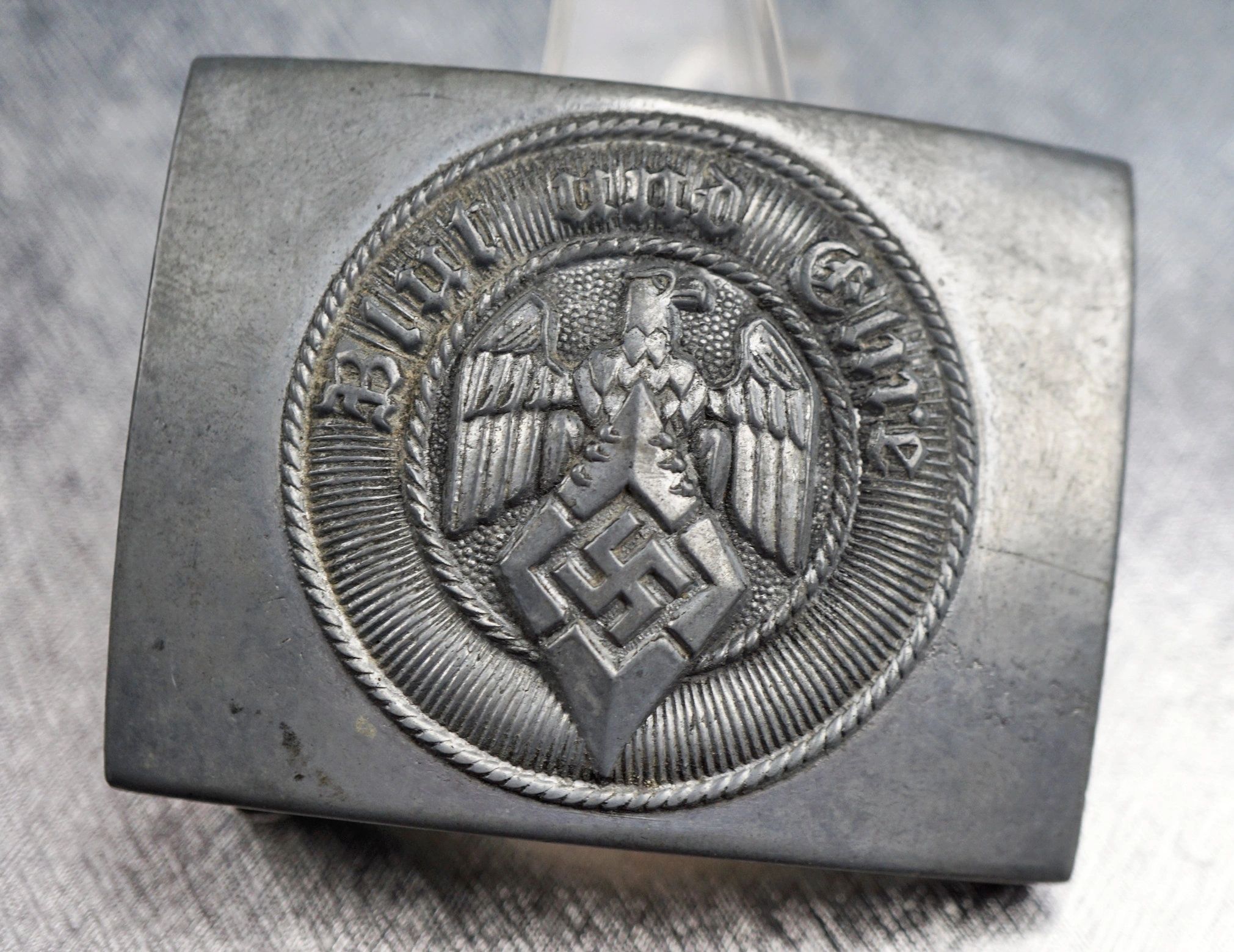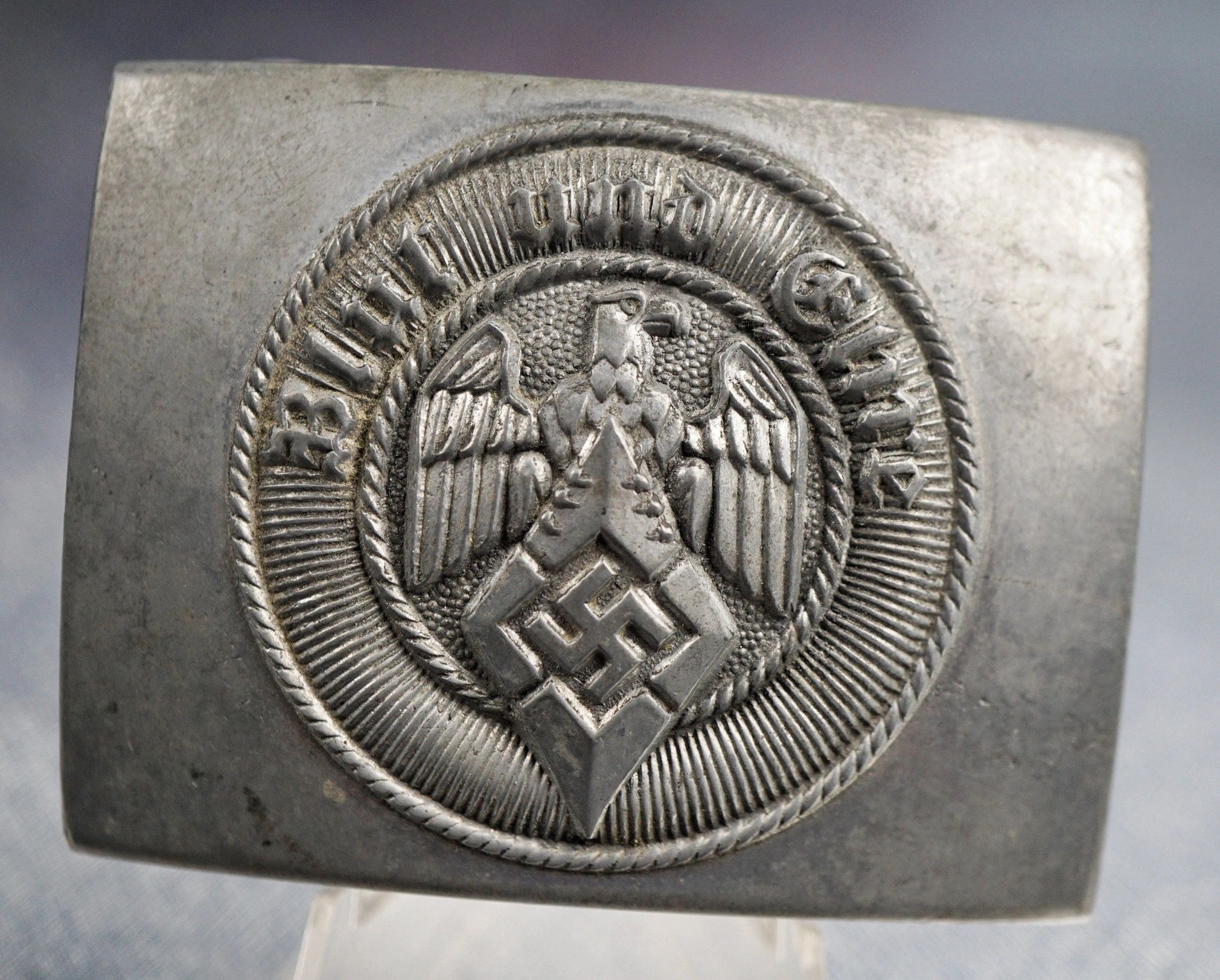 Here is your chance to pick up a late war Hitler Youth belt buckle. This example is manufactured in zinc. RZM marked M4/72 for Wilhelm Deumer. Complete with the period RZM tag on the reverse. Void of any issues or repairs! This piece is a consignment item and is subject to the terms listed on the website. Guaranteed original. The Hitler Youth was the youth organization of the Nazi Party in Germany. Its origins dated back to 1922 and it received the name Hitler-Jugend in July 1926. From 1933 until 1945, it was the sole official boy’s youth organisation in Germany and was partially a paramilitary organization; it was composed of the Hitler Youth proper for male youths aged 14 to 18, and the Deutsches Jungvolk, or DJ, for younger boys aged 10 to 14. The members of the Hitler Youth were viewed as ensuring the future of Nazi Germany and were indoctrinated in Nazi ideology, including racism. The Hitler Youth appropriated many of its activities of the Boy Scout movement (which was banned in 1935), including camping and hiking. However, over time it changed in content and intention. For example, many activities closely resembled military training, with weapons training, assault course circuits and basic tactics. The aim was to instill the motivation that would enable its members to fight faithfully for Nazi Germany as soldiers. There was greater emphasis on physical fitness, hardness and military training than on academic study.Free shipping ANYWHERE IN THE WORLD & I don’t charge PayPal fees like some of the other guys!