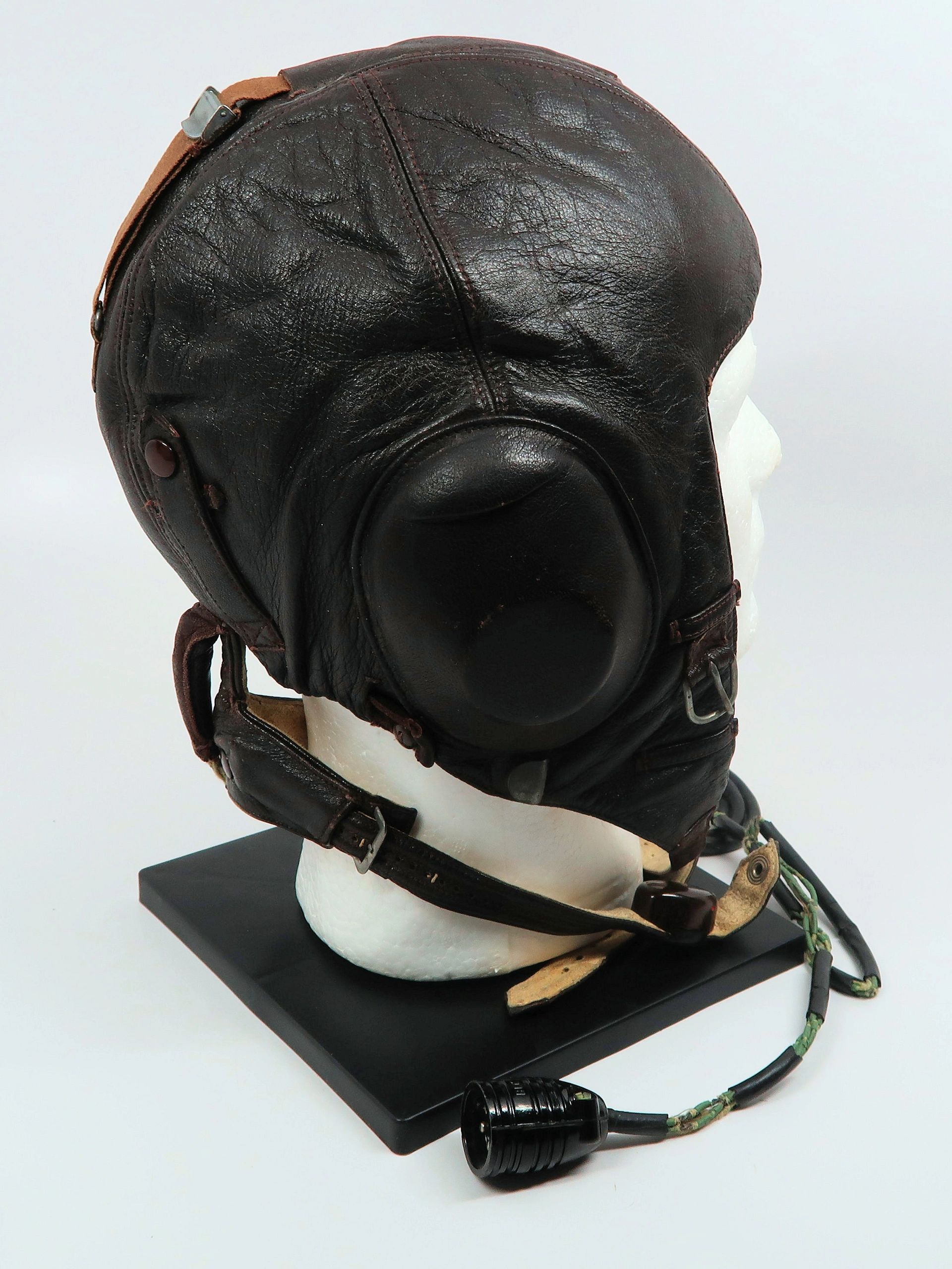 Here is your chance to own a really nice Luftwaffe pilot flight cap. This is the heavy leather version and is complete with the components and electronics you see in the photos. Natural wear and tear. The leather is still nice, soft, and supple and is ready for your display. This would pair well with other period items! Absolutely guaranteed authentic.Click HERE to view more images of this item!With the rise of the Nazi Party and the repudiation of the Versailles Treaty, the Luftwaffe’s existence was publicly acknowledged on 26 February 1935, just over two weeks before open defiance of the Versailles Treaty through German re-armament and conscription would be announced on 16 March. The Condor Legion, a Luftwaffe detachment sent to aid Nationalist forces in the Spanish Civil War, provided the force with a valuable testing ground for new tactics and aircraft. Partially as a result of this combat experience, the Luftwaffe had become one of the most sophisticated, technologically advanced, and battle-experienced air forces in the world when World War II broke out in 1939. The Luftwaffe also operated Fallschirmjäger paratrooper units.The Luftwaffe proved instrumental in the German victories across Poland and Western Europe in 1939 and 1940. During the Battle of Britain, however, despite inflicting severe damage to the RAF’s infrastructure and, during the subsequent Blitz, devastating many British cities, the German air force failed to batter the beleaguered British into submission. From 1942, Allied bombing campaigns gradually destroyed the Luftwaffe’s fighter arm. From late 1942, the Luftwaffe used its surplus ground, support and other personnel to raise Luftwaffe Field Divisions. In addition to its service in the West, the Luftwaffe operated over the Soviet Union, North Africa and Southern Europe. Despite its belated use of advanced turbojet and rocket propelled aircraft for the destruction of Allied bombers, the Luftwaffe was overwhelmed by the Allies’ superior numbers and improved tactics, and a lack of trained pilots and aviation fuel. In January 1945, during the closing stages of the Battle of the Bulge, the Luftwaffe made a last-ditch effort to win air superiority, and met with failure. With rapidly dwindling supplies of petroleum, oil, and lubricants after this campaign, and as part of the entire combined Wehrmacht military forces as a whole, the Luftwaffe ceased to be an effective fighting force.Free shipping ANYWHERE IN THE WORLD & I don’t charge PayPal fees like some of the other guys!