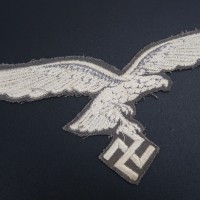 Here is your chance to pick up an excellent example of a Luftwaffe pennant eagle. This example looks like it never made it to be on a pennant and it is unissued. A rare and unusual piece. With the rise of the Nazi Party and the repudiation of the Versailles Treaty, the Luftwaffe’s existence was publicly acknowledged on 26 February 1935, just over two weeks before open defiance of the Versailles Treaty through German re-armament and conscription would be announced on 16 March. The Condor Legion, a Luftwaffe detachment sent to aid Nationalist forces in the Spanish Civil War, provided the force with a valuable testing ground for new tactics and aircraft. Partially as a result of this combat experience, the Luftwaffe had become one of the most sophisticated, technologically advanced, and battle-experienced air forces in the world when World War II broke out in 1939. The Luftwaffe also operated Fallschirmjäger paratrooper units.The Luftwaffe proved instrumental in the German victories across Poland and Western Europe in 1939 and 1940. During the Battle of Britain, however, despite inflicting severe damage to the RAF’s infrastructure and, during the subsequent Blitz, devastating many British cities, the German air force failed to batter the beleaguered British into submission. From 1942, Allied bombing campaigns gradually destroyed the Luftwaffe ‘s fighter arm. From late 1942, the Luftwaffe used its surplus ground, support and other personnel to raise Luftwaffe Field Divisions. In addition to its service in the West, the Luftwaffe operated over the Soviet Union, North Africa and Southern Europe. Despite its belated use of advanced turbojet and rocket propelled aircraft for the destruction of Allied bombers, the Luftwaffe was overwhelmed by the Allies’ superior numbers and improved tactics, and a lack of trained pilots and aviation fuel. In January 1945, during the closing stages of the Battle of the Bulge, the Luftwaffe made a last-ditch effort to win air superiority, and met with failure. With rapidly dwindling supplies of petroleum, oil, and lubricants after this campaign, and as part of the entire combined Wehrmacht military forces as a whole, the Luftwaffe ceased to be an effective fighting force. Free shipping ANYWHERE IN THE WORLD & I don’t charge PayPal fees like some of the other guys!