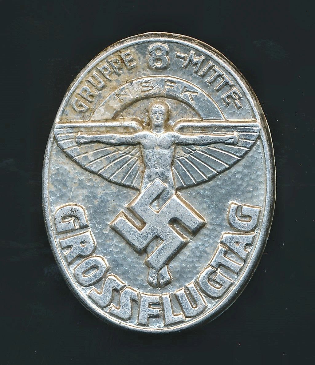 Here is your chance to pick up a wonderful tinnie for the Flugtag event held by NSFK Gruppe 8. I like pieces like this because not only are they extremely affordable but each one is it’s own little work of art in a sense.   The National Socialist Flyers Corps (NSFK), was a paramilitary organization of the Nazi Party that was founded in 1937 and conducted military aviation training in gliders and private airplanes. When Nazi Germany formed the Luftwaffe, many NSFK members transferred. The NSFK existed throughout WWII, but mainly performed air defense duties such as anti-aircraft service. This is a fantastic and rare historical treasure that would make a perfect addition to any Third Reich collection.   Free shipping ANYWHERE IN THE WORLD & I don’t charge PayPal fees like some of the other guys!
