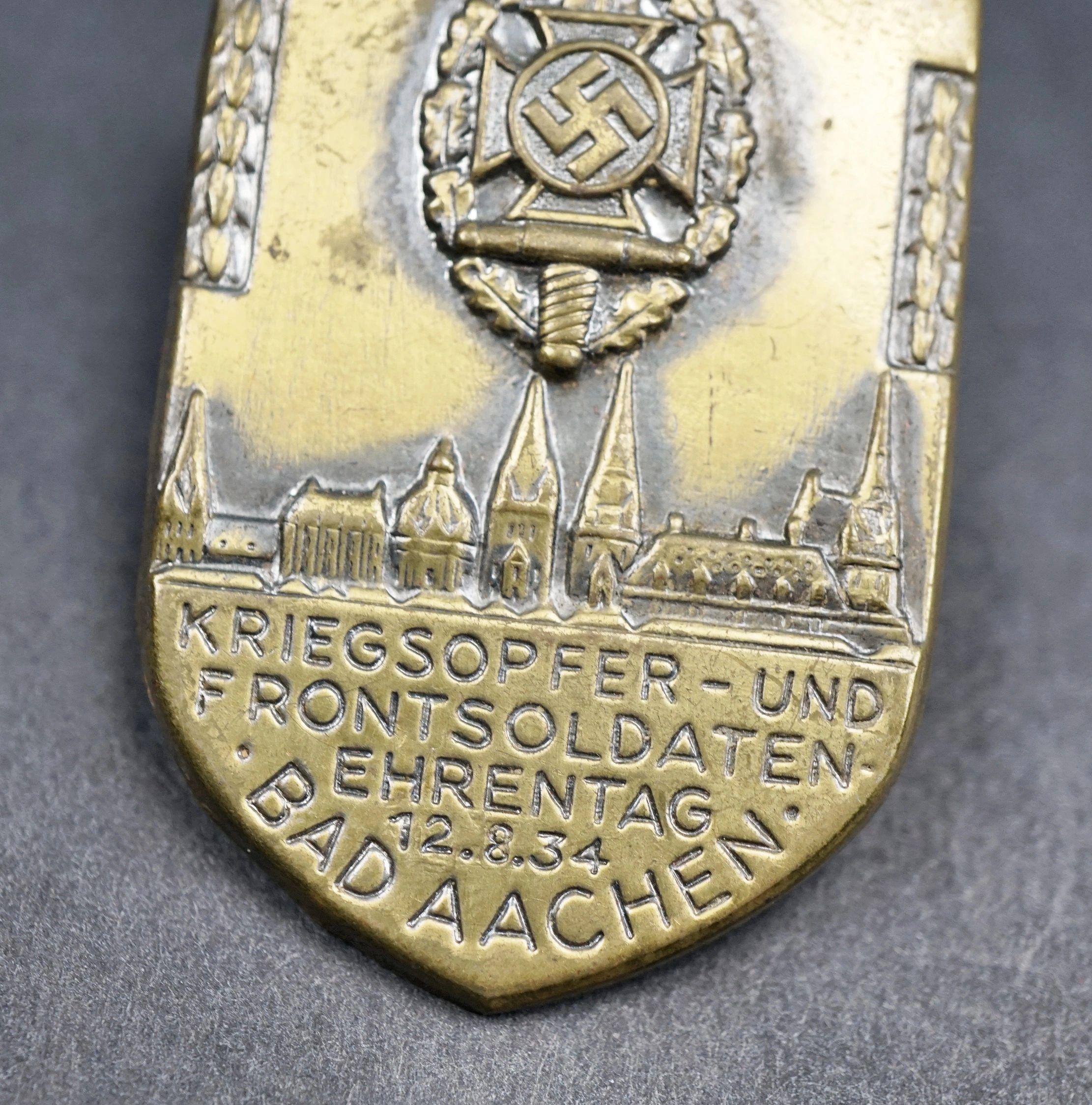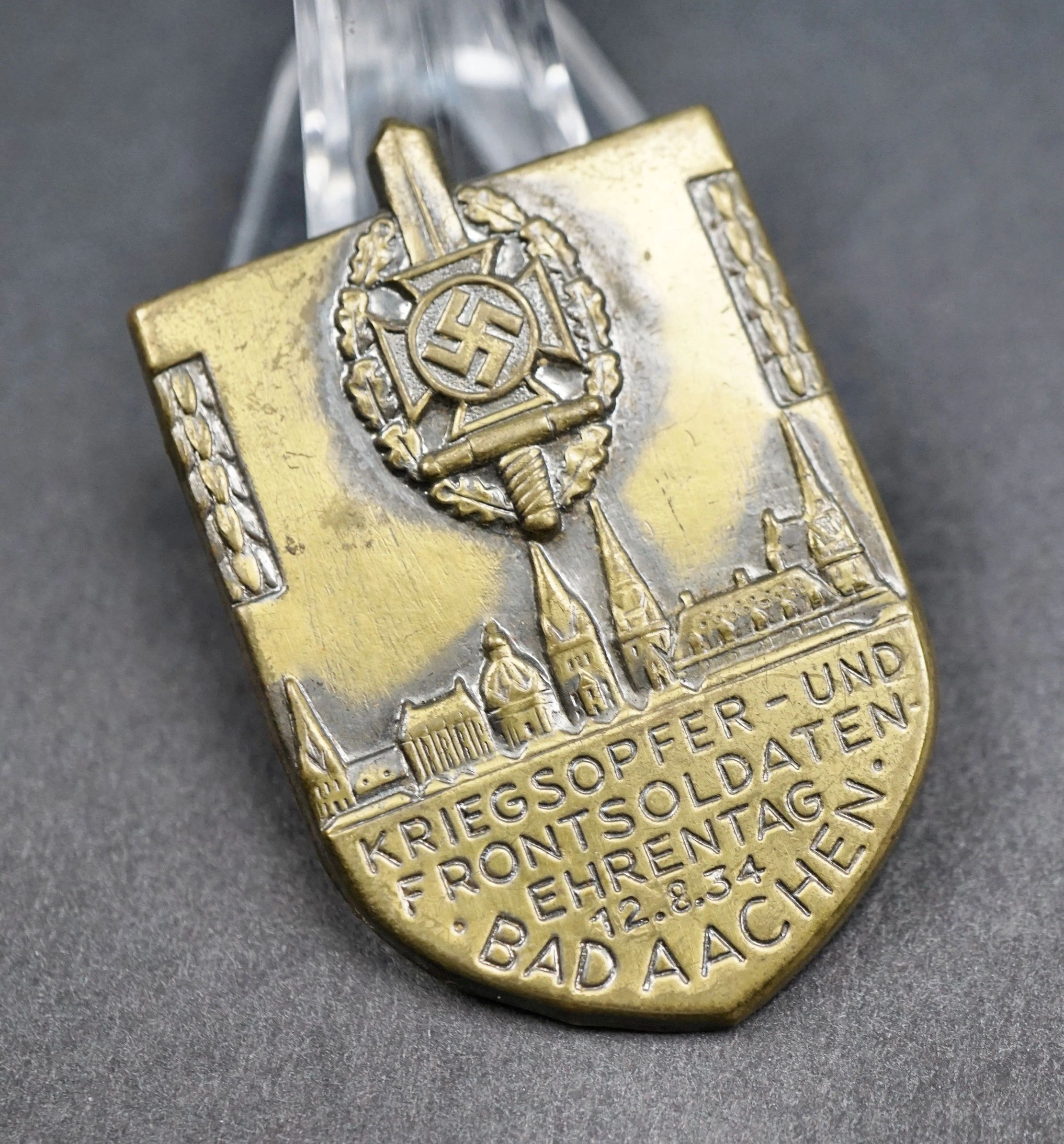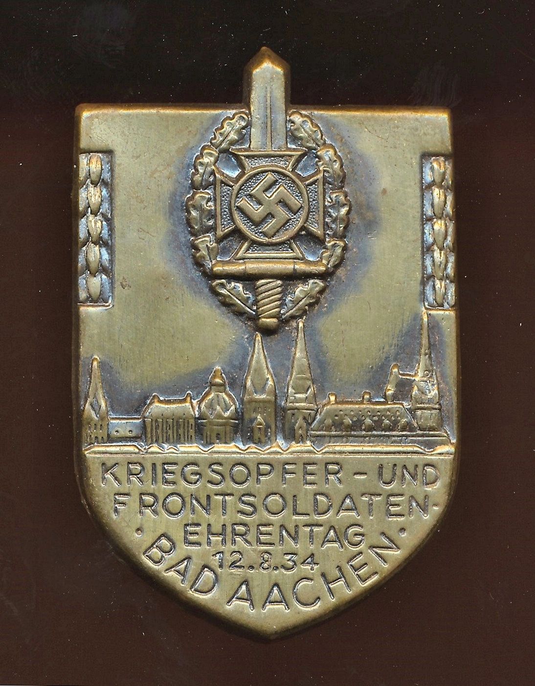 Here is your chance to pick up a wonderful tinnie for the NSKOV Honor Day event. This took place in 1934 in Bad Aachen. I like pieces like this because not only are they extremely affordable but each one is it’s own little work of art in a sense.  The National Socialist War Victim’s Care (Nationalsozialistische Kriegsopferversorgung, NSKOV) was a social welfare organization for seriously wounded veterans as well as frontline fighters of World War I. The NSKOV was established in 1934 and was affiliated to the Nazi Party. After Nazi Germany’s defeat in World War II, the American military government issued a special law outlawing the Nazi Party and all of its branches. Known as Law number five, this denazification decree disbanded the NSKOV as with all organizations linked to the Nazi Party. The organizations taking care of the welfare for World War I veterans had to be established anew during the postwar reconstruction of both West and East Germany.Free shipping ANYWHERE IN THE WORLD & I don’t charge PayPal fees like some of the other guys!