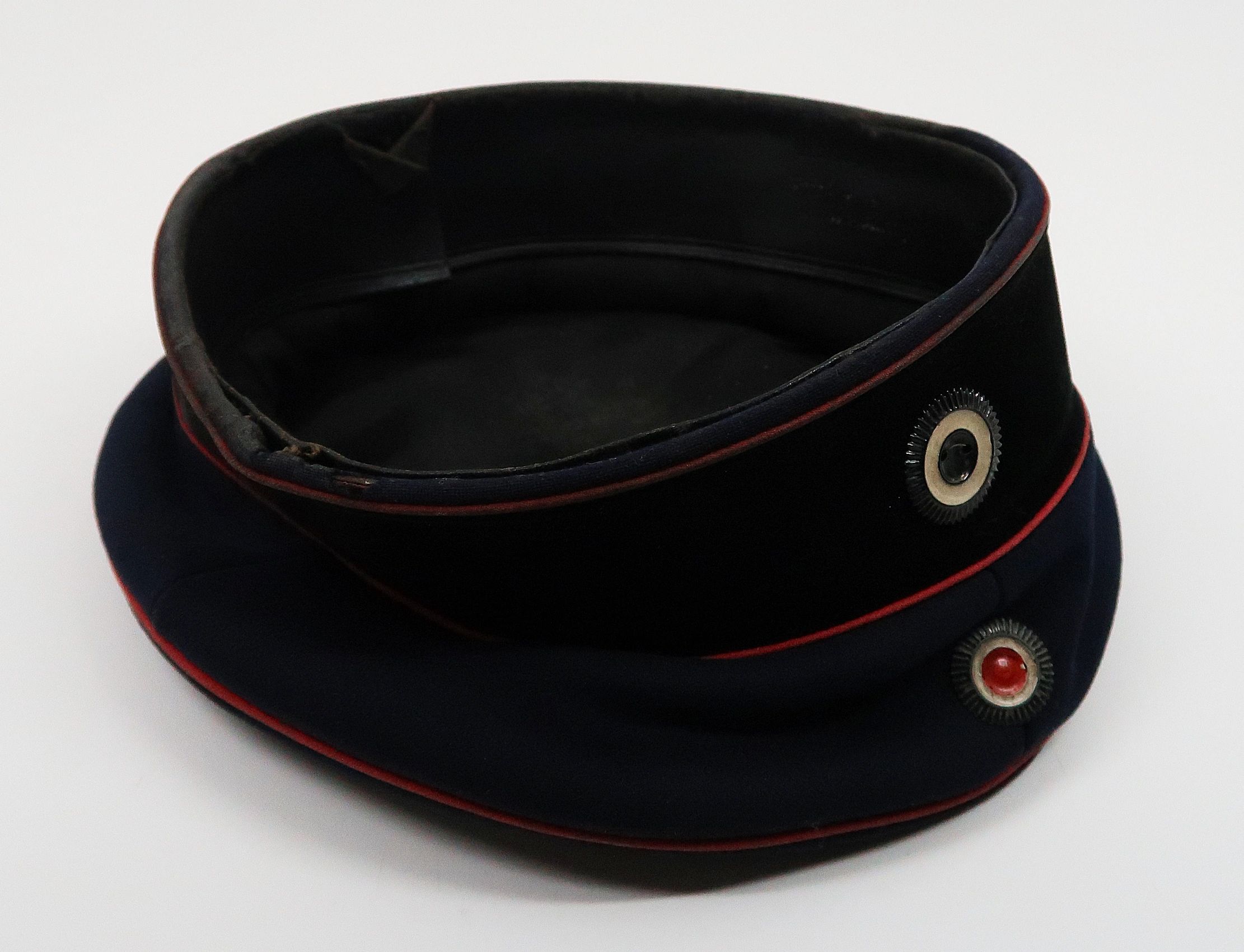 Here is your chance to pick up a really nice pre war Prussian Motorized Troops field cap. The interior sweatband is in nice condition and is maker marked. The cap is complete with period insignia. Correct red piping on dark blue wool and black felt band. The hat shows honest (though light) wear throughout and is right as rain.Click HERE to view more images of this item!This piece is a consignment item and is subject to the terms listed on the website. Guaranteed original. Imperial Germany was formally founded on 1 January 1871 when the south German states, except for Austria, joined the North German Confederation and the new constitution came into force changing the name of the federal state to the German Empire and introduced the title of German Emperor for Wilhelm I, King of Prussia from the House of Hohenzollern. Berlin remained its capital, and Otto, Prince of Bismarck, Minister-President of Prussia became Chancellor, the head of government. As these events occurred, the Prussian-led North German Confederation and its southern German allies were still engaged in the Franco-Prussian War.The German Empire consisted of 26 states, most of them ruled by royal families. They included four kingdoms, six grand duchies, five duchies (six before 1876), seven principalities, three free Hanseatic cities, and one imperial territory. Although Prussia was one of few kingdoms in the realm, it contained about two thirds of Germany’s population and territory. Prussian dominance had also been established constitutionally.During its 47 years of existence, the German Empire was an industrial, technological, and scientific giant, gaining more Nobel Prizes in science than any other country. By 1900, Germany was the largest economy in Europe, surpassing the United Kingdom, as well as the second-largest in the world, behind only the United States.Late in Bismarck’s chancellorship and in spite of his personal opposition, Germany became involved in colonialism. Claiming much of the leftover territory that was yet unclaimed in the scramble for Africa, it managed to build the third largest colonial empire at the time, after the British and the French empires.Germany became a great power, boasting a rapidly developing rail network, the world’s strongest army, and a fast-growing industrial base. In less than a decade, its navy became second only to Britain’s Royal Navy. In 1879, the German Empire consolidated the Dual Alliance with Austria-Hungary, followed by the Triple Alliance with Italy in 1882. It also retained strong diplomatic ties to the Ottoman Empire. When World War 1 arrived, Italy left the alliance and the Ottoman Empire formally allied with Germany.In the First World War, German plans to capture Paris quickly in the autumn of 1914 failed. The war on the Western Front became a stalemate. However, Imperial Germany had success on the Eastern Front. The German declaration of unrestricted submarine warfare in early 1917 contributed to bringing the United States into the war.The high command under Paul von Hindenburg and Erich Ludendorff increasingly controlled the country, but in October after the failed offensive in spring 1918, the German armies were in retreat, allies Austria-Hungary and the Ottoman Empire had collapsed, and Bulgaria had surrendered. The Empire collapsed in the November 1918 Revolution with the removal of its monarchs. This left Germany with the Weimar Republic, and a devastated and unsatisfied populace, faced with postwar reparation costs of nearly 270 billion dollars, all in all leading to the rise of Adolf Hitler and Nazism.Free shipping ANYWHERE IN THE WORLD & I don’t charge PayPal fees like some of the other guys!