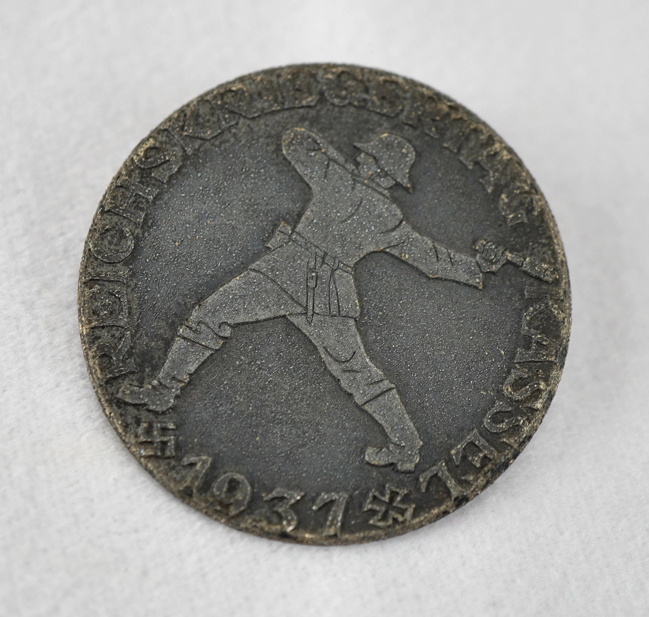 Here is your chance to pick up a Reichskreigertag tinnie. This event took place in 1937 in the city of Kassel. I like pieces like this because not only are they extremely affordable but each one is it’s own little work of art in a sense. The National Socialist German Workers’ Party (Nationalsozialistische Deutsche Arbeiterpartei, abbreviated NSDAP), was a far-right political party in Germany that was active between 1920 and 1945, that created and supported the ideology of National Socialism. The Nazi Party emerged from the German nationalist, racist and populist Freikorps paramilitary culture, which fought against the communist uprisings in post-World War I Germany. Initially, Nazi political strategy focused on anti-big business, anti-bourgeois, and anti-capitalist rhetoric, although this was later downplayed to gain the support of business leaders, and in the 1930s the party’s main focus shifted to anti-Semitic and anti-Marxist themes. Adolf Hitler, the party’s leader since 1921, was appointed Chancellor of Germany by President Paul von Hindenburg on 30 January 1933. Hitler rapidly established a totalitarian regime known as the Third Reich. After the death of President Hindenburg on 2 August 1934, Hitler merged the offices of party leader, head of state and chief of government in one, taking the title of Führer und Reichskanzler. The NSDAP would control Germany until the end of the war. Free shipping ANYWHERE IN THE WORLD & I don’t charge PayPal fees like some of the other guys!