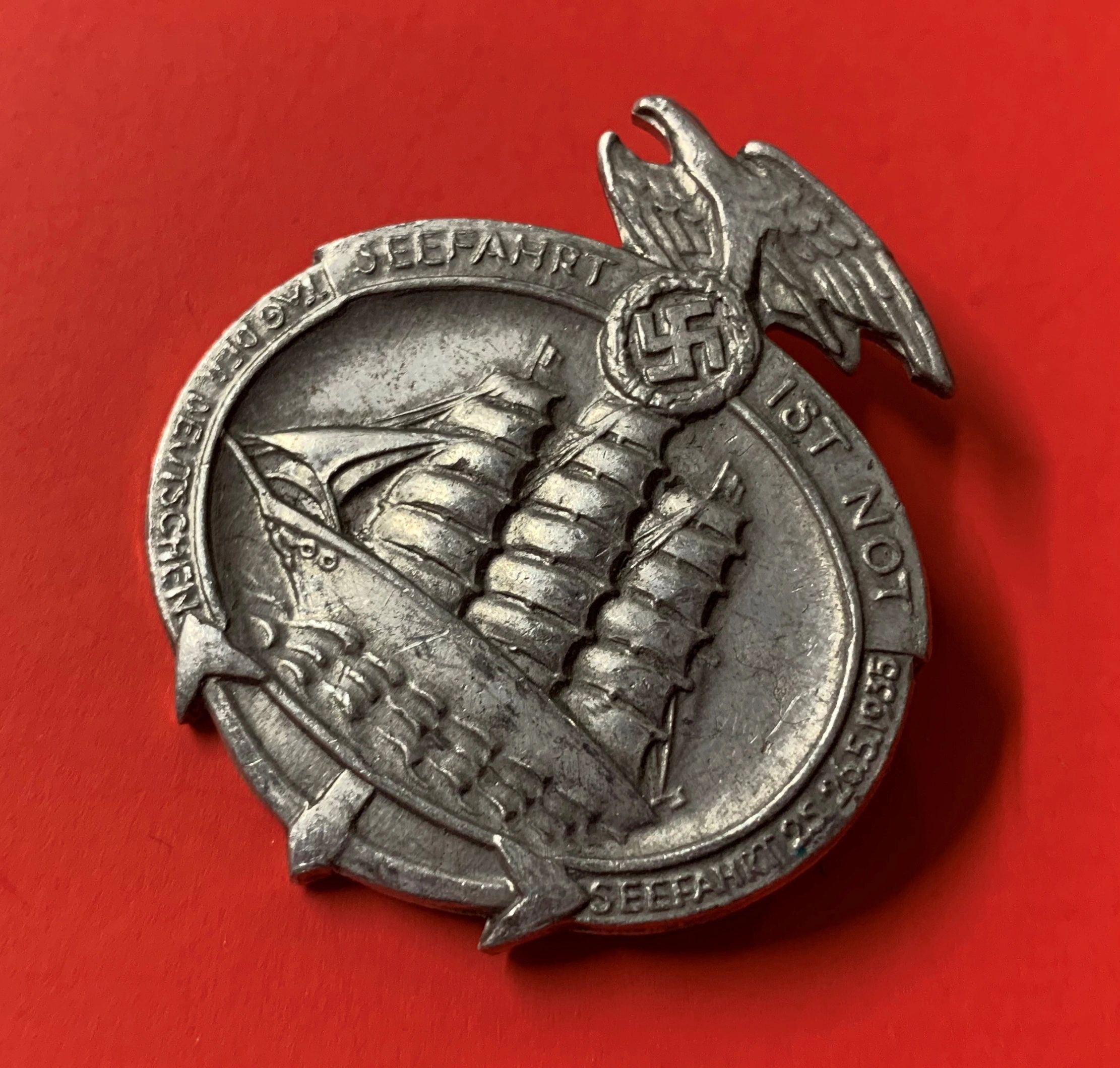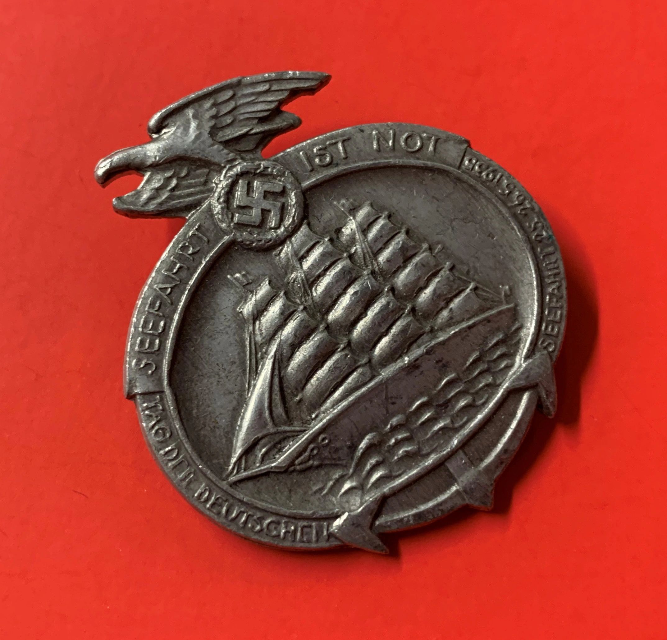 Here is your chance to pick up a wonderful tinnie for the Tag der Deutschen Seefahrt in 1935. This example is maker marked on the reverse. I like pieces like this because not only are they extremely affordable but each one is it’s own little work of art in a sense. The battleship motif on the front is most impressive. The National Socialist German Workers’ Party (Nationalsozialistische Deutsche Arbeiterpartei, abbreviated NSDAP), was a far-right political party in Germany that was active between 1920 and 1945, that created and supported the ideology of National Socialism. The Nazi Party emerged from the German nationalist, racist and populist Freikorps paramilitary culture, which fought against the communist uprisings in post-World War I Germany. Initially, Nazi political strategy focused on anti-big business, anti-bourgeois, and anti-capitalist rhetoric, although this was later downplayed to gain the support of business leaders, and in the 1930s the party’s main focus shifted to anti-Semitic and anti-Marxist themes. Adolf Hitler, the party’s leader since 1921, was appointed Chancellor of Germany by President Paul von Hindenburg on 30 January 1933. Hitler rapidly established a totalitarian regime known as the Third Reich. After the death of President Hindenburg on 2 August 1934, Hitler merged the offices of party leader, head of state and chief of government in one, taking the title of Führer und Reichskanzler. The NSDAP would control Germany until the end of the war. Free shipping ANYWHERE IN THE WORLD & I don’t charge PayPal fees like some of the other guys!