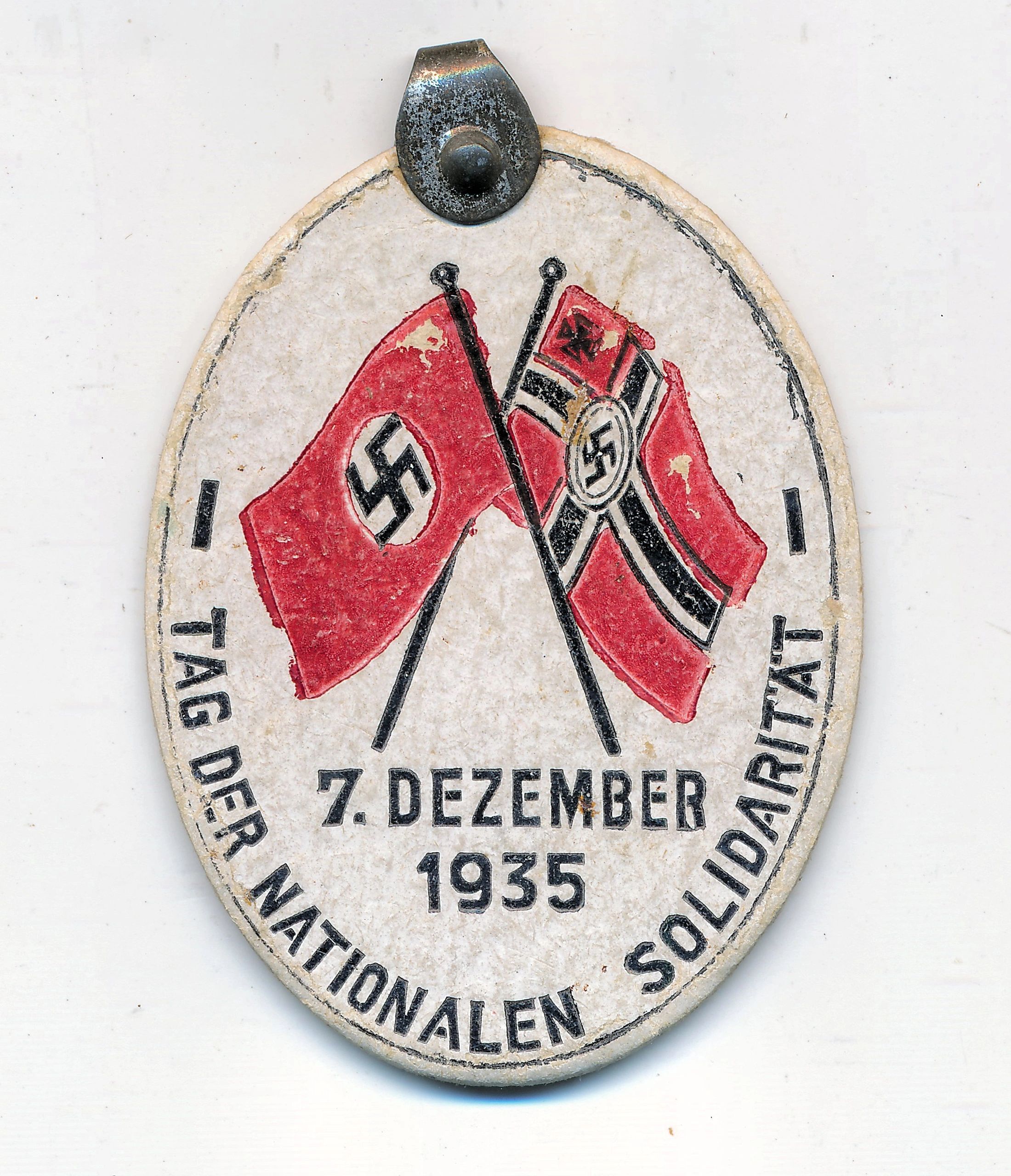 Here is your chance to pick up a day of national solidarity tinnie. This event took place on December 7th 1935. Produced in paper without pin. I like pieces like this because not only are they extremely affordable but each one is it’s own little work of art in a sense.The National Socialist German Workers’ Party (Nationalsozialistische Deutsche Arbeiterpartei, abbreviated NSDAP), was a far-right political party in Germany that was active between 1920 and 1945, that created and supported the ideology of National Socialism. The Nazi Party emerged from the German nationalist, racist and populist Freikorps paramilitary culture, which fought against the communist uprisings in post-World War I Germany. Initially, Nazi political strategy focused on anti-big business, anti-bourgeois, and anti-capitalist rhetoric, although this was later downplayed to gain the support of business leaders, and in the 1930s the party’s main focus shifted to anti-Semitic and anti-Marxist themes. Adolf Hitler, the party’s leader since 1921, was appointed Chancellor of Germany by President Paul von Hindenburg on 30 January 1933. Hitler rapidly established a totalitarian regime known as the Third Reich. After the death of President Hindenburg on 2 August 1934, Hitler merged the offices of party leader, head of state and chief of government in one, taking the title of Führer und Reichskanzler. The NSDAP would control Germany until the end of the war. Free shipping ANYWHERE IN THE WORLD & I don’t charge PayPal fees like some of the other guys!