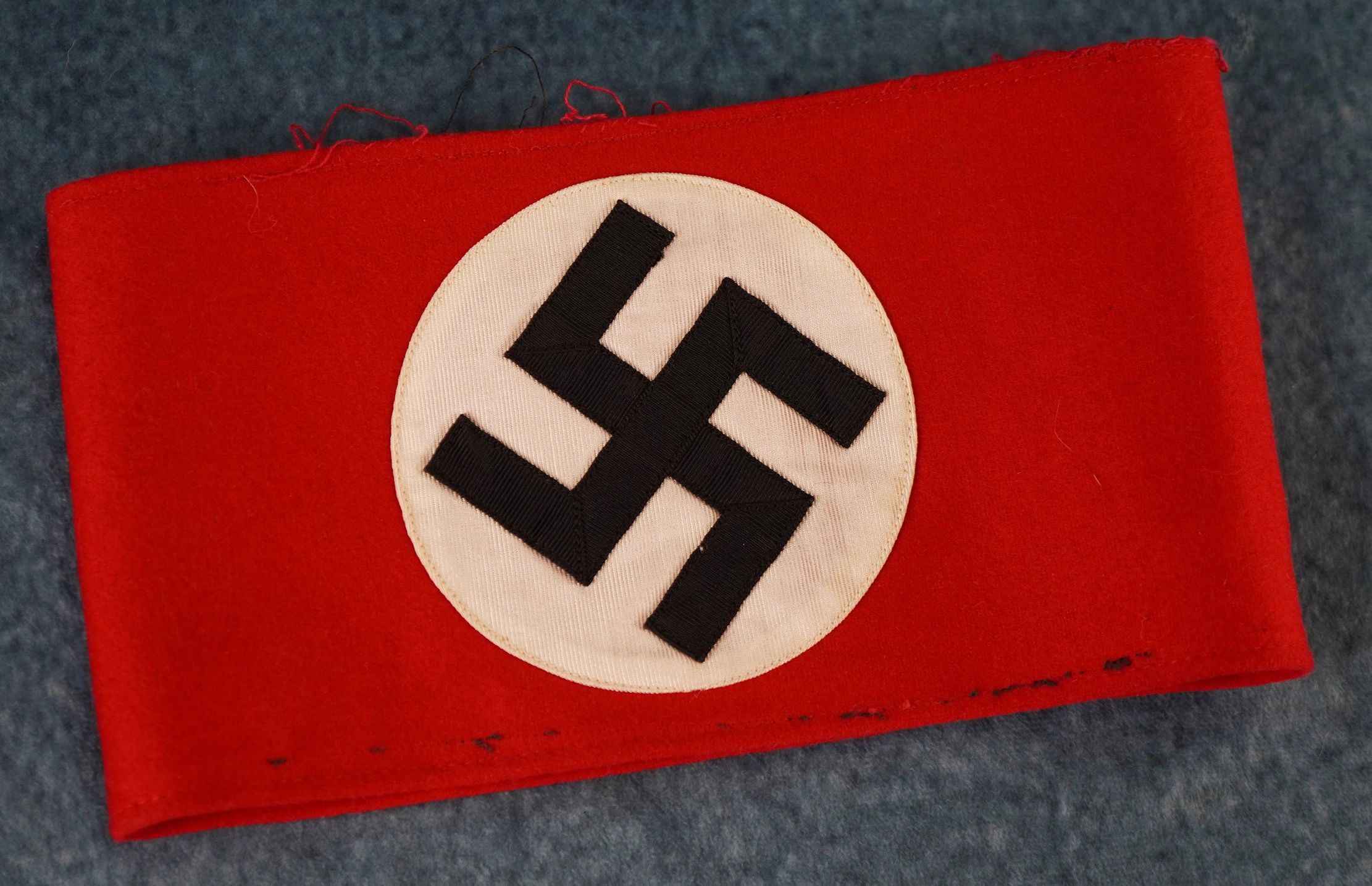 Here is your chance to pick up a most iconic piece of history. Here we have a multi-piece construction NSDAP armband. Produced in wool with a ribbed roundel. Red wool body and still complete with the rare SS RZM tag. Black threads remain from being attached to a tunic, so likely SS used! Red wool itself also has RZM proof marks. Would look great on display! The National Socialist German Workers’ Party ( Nationalsozialistische Deutsche Arbeiterpartei , abbreviated NSDAP), was a far-right political party in Germany that was active between 1920 and 1945, that created and supported the ideology of National Socialism. The Nazi Party emerged from the German nationalist, racist and populist Freikorps paramilitary culture, which fought against the communist uprisings in post-World War I Germany. Initially, Nazi political strategy focused on anti-big business, anti-bourgeois, and anti-capitalist rhetoric, although this was later downplayed to gain the support of business leaders, and in the 1930s the party’s main focus shifted to anti-Semitic and anti-Marxist themes. Adolf Hitler, the party’s leader since 1921, was appointed Chancellor of Germany by President Paul von Hindenburg on 30 January 1933. Hitler rapidly established a totalitarian regime known as the Third Reich. After the death of President Hindenburg on 2 August 1934, Hitler merged the offices of party leader, head of state and chief of government in one, taking the title of Führer und Reichskanzler . The NSDAP would control Germany until the end of the war. Free shipping ANYWHERE IN THE WORLD & I don’t charge PayPal fees like some of the other guys! LA