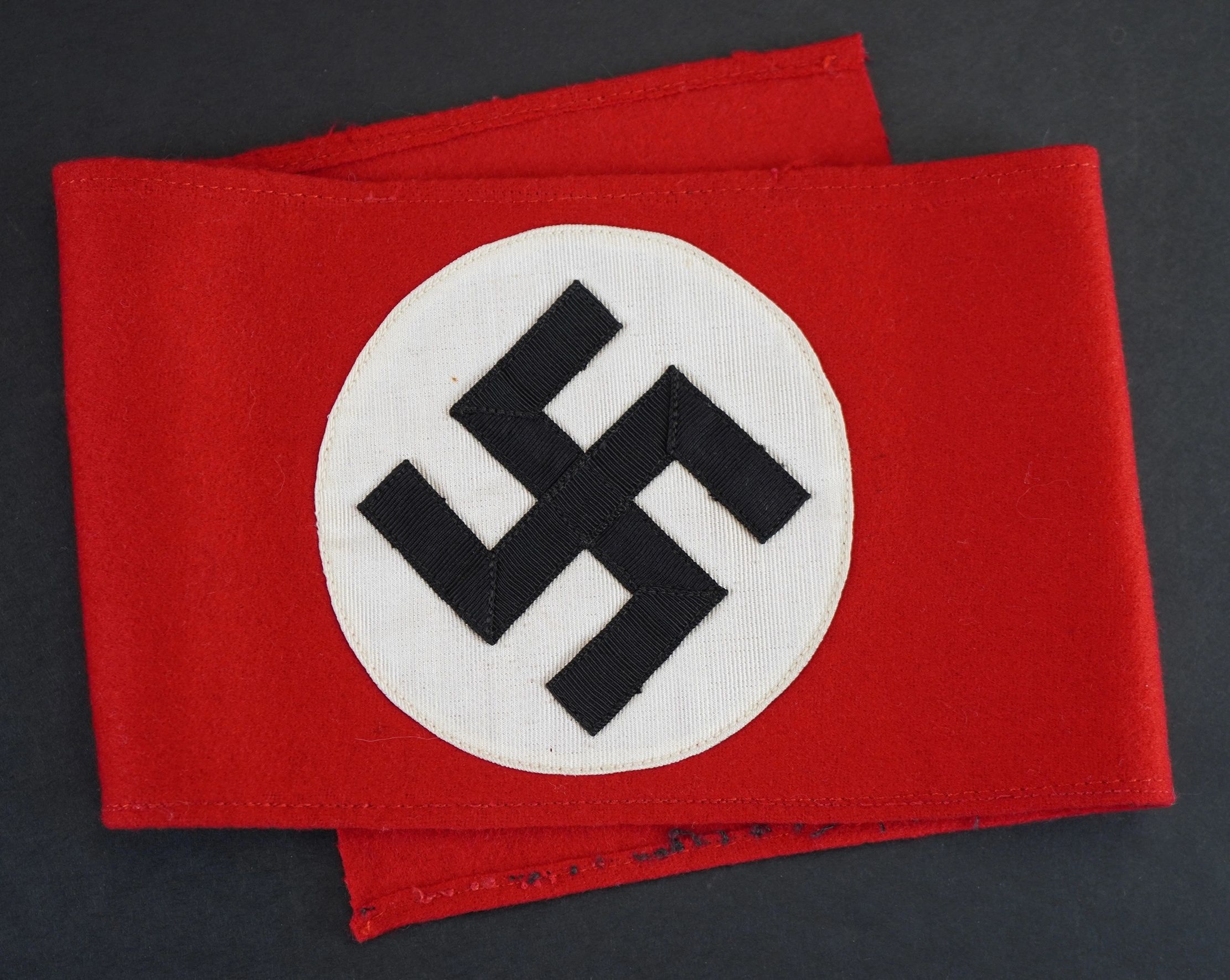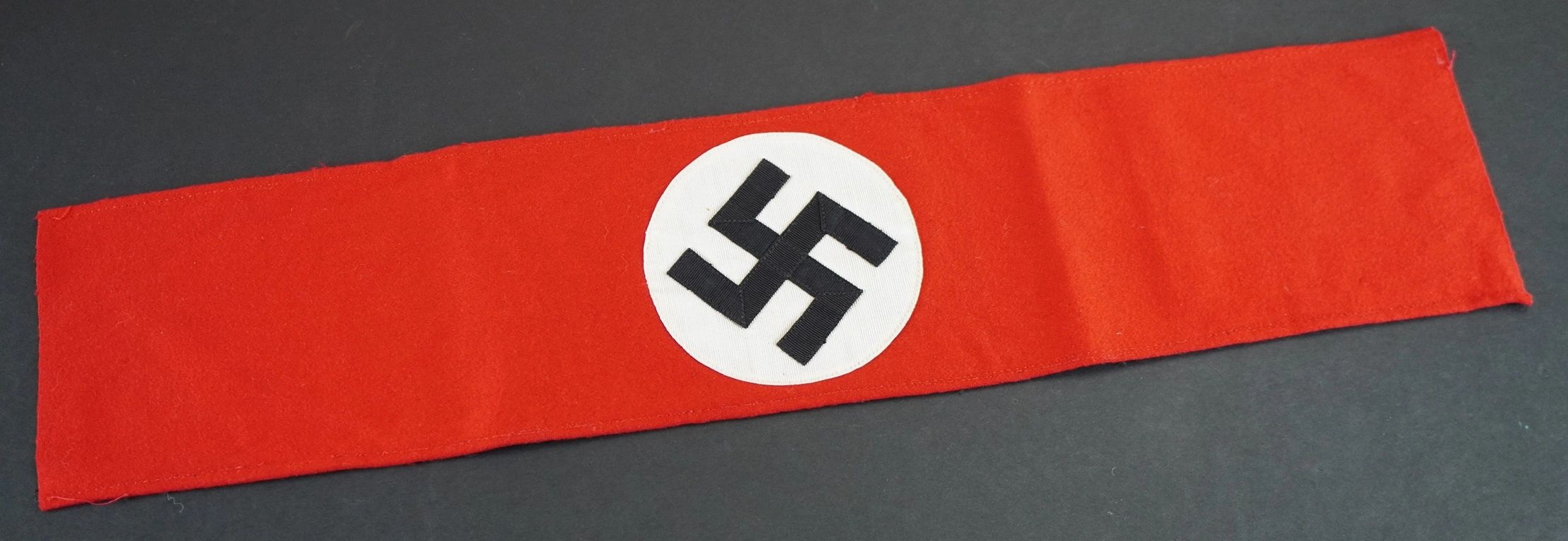 Here is your chance to pick up a most iconic piece of history. Here we have a multi-piece construction NSDAP armband. Produced in wool with a ribbed roundel. Red wool body with minimal moth damage, and still complete with the rare SS RZM tag. Black threads remain from being attached to a tunic, so likely SS used! Would look great on display! The National Socialist German Workers’ Party ( Nationalsozialistische Deutsche Arbeiterpartei , abbreviated NSDAP), was a far-right political party in Germany that was active between 1920 and 1945, that created and supported the ideology of National Socialism. The Nazi Party emerged from the German nationalist, racist and populist Freikorps paramilitary culture, which fought against the communist uprisings in post-World War I Germany. Initially, Nazi political strategy focused on anti-big business, anti-bourgeois, and anti-capitalist rhetoric, although this was later downplayed to gain the support of business leaders, and in the 1930s the party’s main focus shifted to anti-Semitic and anti-Marxist themes. Adolf Hitler, the party’s leader since 1921, was appointed Chancellor of Germany by President Paul von Hindenburg on 30 January 1933. Hitler rapidly established a totalitarian regime known as the Third Reich. After the death of President Hindenburg on 2 August 1934, Hitler merged the offices of party leader, head of state and chief of government in one, taking the title of Führer und Reichskanzler . The NSDAP would control Germany until the end of the war. Free shipping ANYWHERE IN THE WORLD & I don’t charge PayPal fees like some of the other guys! LA