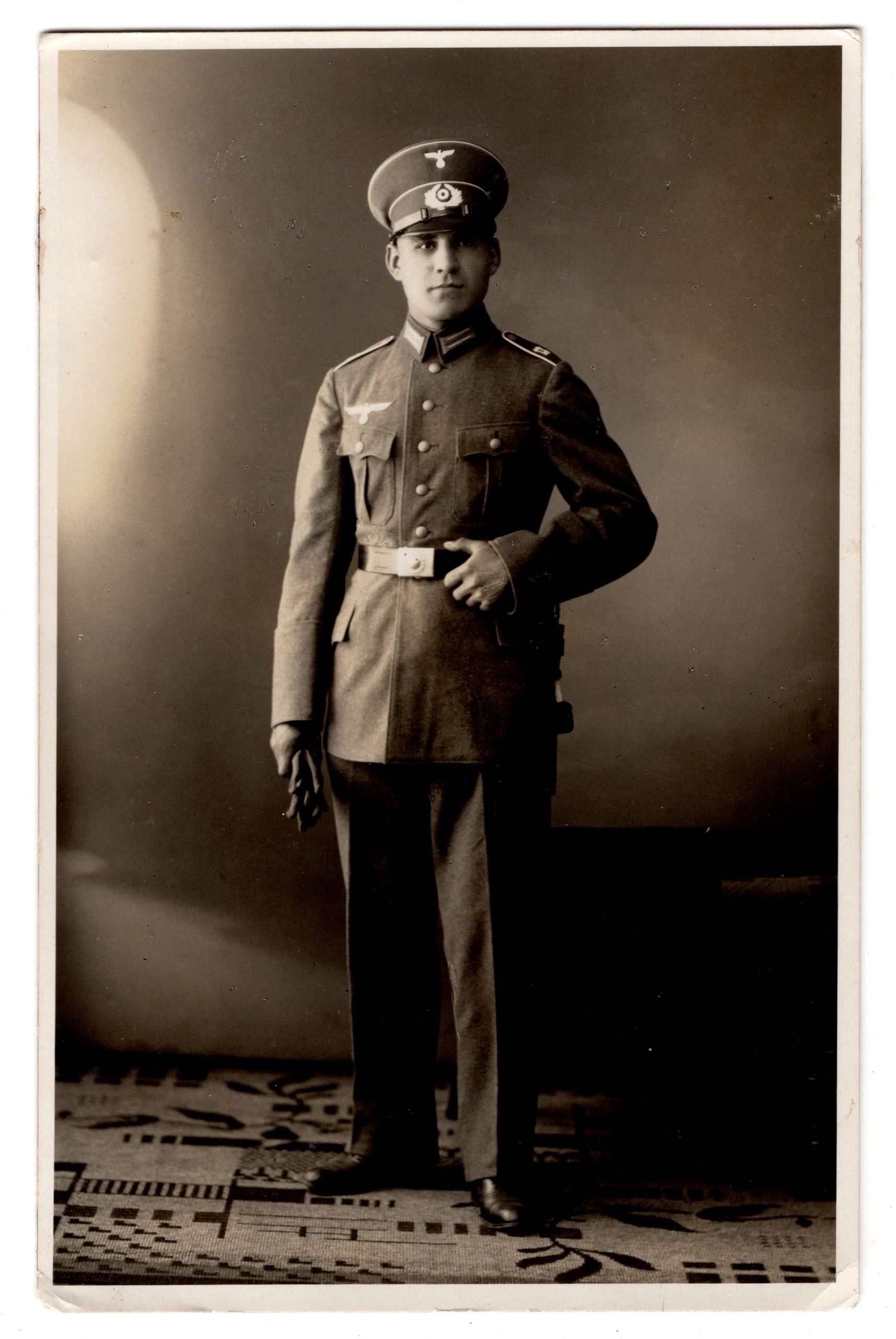 Here is your chance to own a nice photo of an early era Heer enlisted man. Scrapbook remnants on the reverse. His visor cap displays the earlier Heer visor cap eagle. In fair condition overall and would display great with other items! The Heer was the land forces component of the Wehrmacht, the regular German Armed Forces, from 1935 until it ceased to exist in 1945 and then formally dissolved in August 1946. During World War II, a total of about 13.6 million soldiers served in the German Army. Germany’s army personnel were made up of volunteers and conscripts. Only 17 months after Adolf Hitler announced publicly the German rearmament program, the Army reached its projected goal of 36 divisions. During the autumn of 1937, two more corps were formed. In 1938 four additional corps were formed with the inclusion of the five divisions of the Austrian Army after the Anschluss in March. During the period of its expansion under Hitler, the German Army continued to develop concepts pioneered during World War I, combining ground (Army) and air (Luftwaffe) assets into combined arms forces. The German military managed quick victories in the two initial years of World War II, a new style of warfare described as Blitzkrieg for its speed and destructive power. Free shipping ANYWHERE IN THE WORLD & I don’t charge PayPal fees like some of the other guys!
