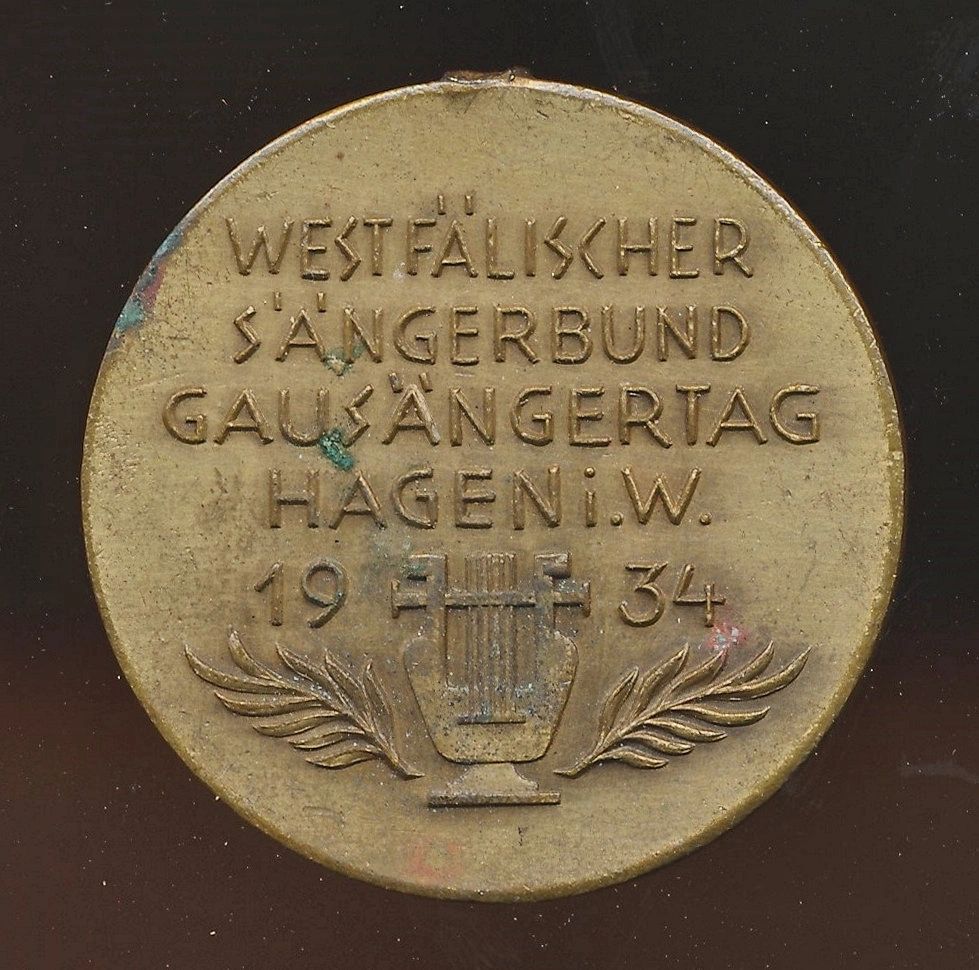Here is your chance to pick up a wonderful medal for the Westfälischer Sängerbund Gausängertag event. The event was held in Hagen in 1934. A very impressive piece but unfortunately the suspension ring has broken over time. I like pieces like this because not only are they extremely affordable but each one is it’s own little work of art in a sense. Free shipping ANYWHERE IN THE WORLD & I don’t charge PayPal fees like some of the other guys!