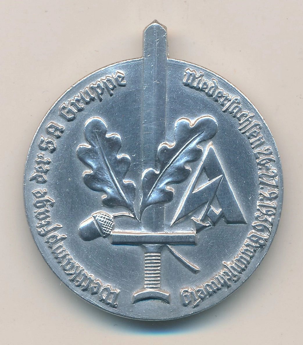 Here is your chance to pick up a wonderful tinnie for the Wettkämpftage der SA event. The event was held in Gruppe Niedersaschen in the city of Braunschweig on the 26th and 27th of September, 1936. I like pieces like this because not only are they extremely affordable but each one is it’s own little work of art in a sense. This piece is a consignment item and is subject to the terms listed on the website. Guaranteed original. The Sturmabteilung was the Nazi Party’s original paramilitary wing. It played a significant role in Adolf Hitler’s rise to power in the 1920s and 1930s. Its primary purposes were providing protection for Nazi rallies and assemblies, disrupting the meetings of opposing parties, fighting against the paramilitary units of the opposing parties, especially the Rotfrontkämpferbund of the Communist Party of Germany, and intimidating Romani, trade unionists, and, especially, Jews. The SA were also called the Brownshirts, from the color of their uniform shirts. Brown-colored shirts were chosen as the SA uniform because a large number of them were cheaply available after World War I, having originally been ordered during the war for colonial troops posted to Germany’s former African colonies. After The Night of the Long Knives in 1934, Hitler withdrew support from the SA. The SA continued to exist, but was effectively superseded by the SS, although the paramilitary forces were not formally dissolved until after Nazi Germany’s final capitulation to the Allies in 1945. Free shipping ANYWHERE IN THE WORLD & I don’t charge PayPal fees like some of the other guys!